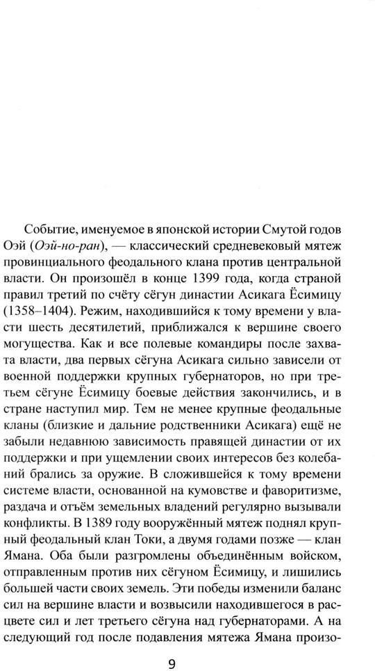 Эпоха Муромати (1336–1573) считается едва ли не самым мрачным и малопродуктивным отрезком японской истории. Она хотя и не обделена полностью вниманием историков, всё же очень уступает в этом отношении предшествующему и последующему периодам, не говоря уже о более близких к нам временах. Книга известного японоведа Александра Прасола за счёт глубокого обращения к первоисточникам расширяет наши знания о том, как воспринимали и описывали события своего времени авторы немногих дошедших до нас литературных памятников этого периода. Издание содержит первый в отечественном японоведении перевод с кратким описанием и подробным комментарием к текстам трёх литературных памятников, составление которых относится к XIV–XV векам: военной хроники Оэйки («Записи годов Оэй»), семейного наставления Нантайхэйки («Изъяны „Повести о великом мире“») и военной хроники Онинки («Записи годов Онин»). Снабжённая множеством иллюстраций книга даёт читателю возможность ближе познакомиться с некоторыми малоизвестными реалиями японской жизни периода Муромати. |