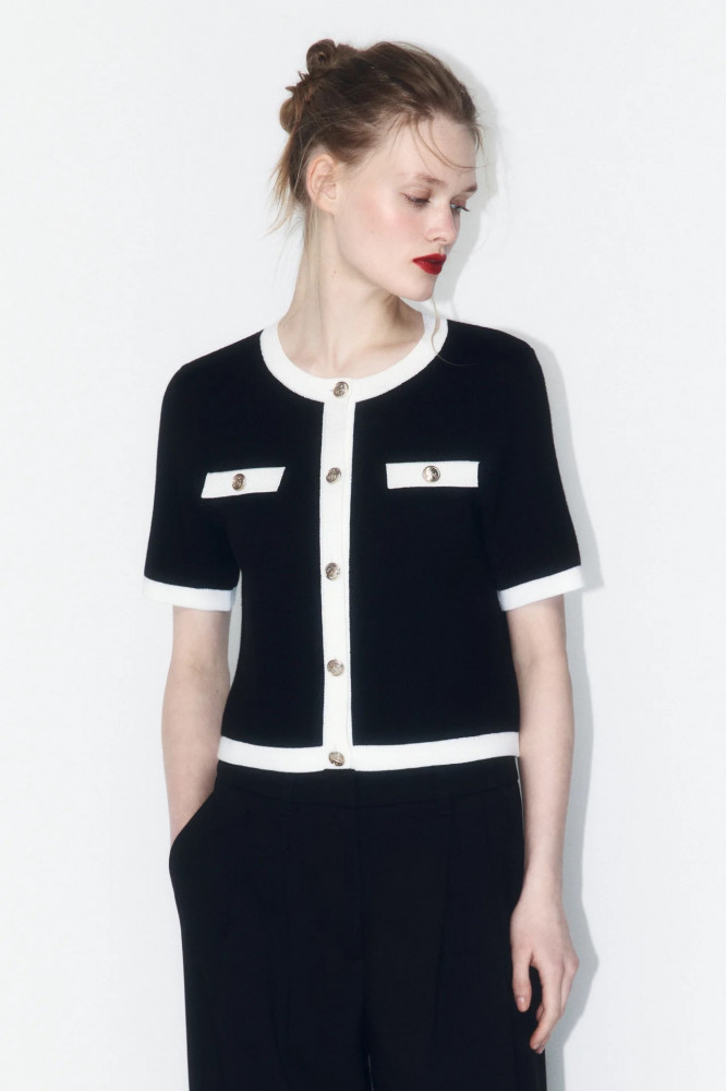 Женственность — вне времени, а вещи в духе французской богемы всегда будут в центре внимания. Этот укороченный вязаный жакет на пуговицах навевает атмосферу Chanel и добавит в образ элегантности и утончённости. Носи его как самостоятельную вещь или сочетай с топами и блузками, чтобы создавать комфортные образы на каждый день — для школы, университета, офиса или прогулок. Стильный кардиган с короткими рукавами станет базовой вещью гардероба и подойдёт для любого времени года.