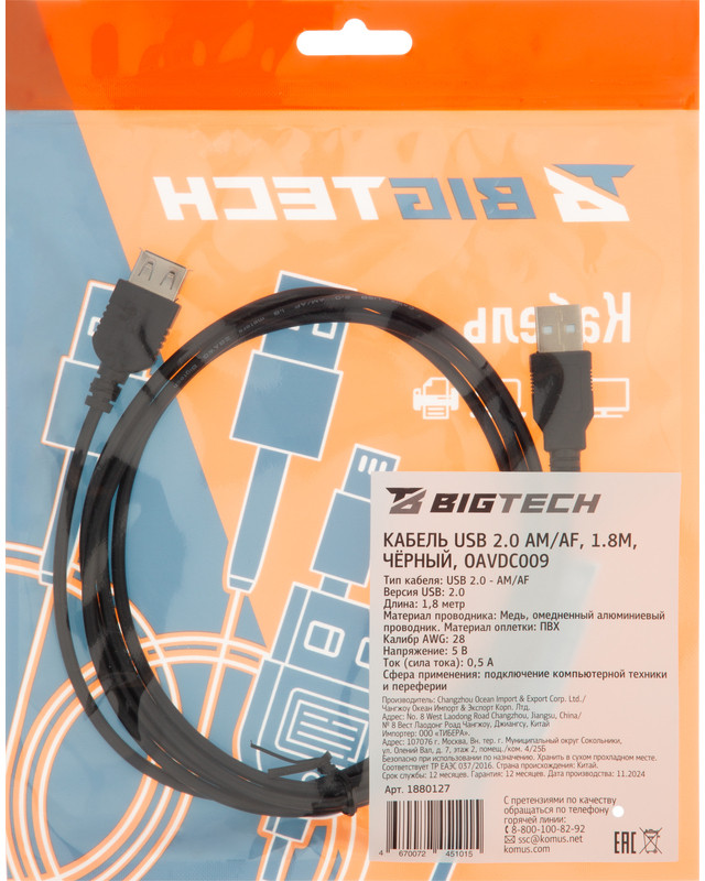 BigTech Кабель питания USB 2.0 AM/AF-35% +21