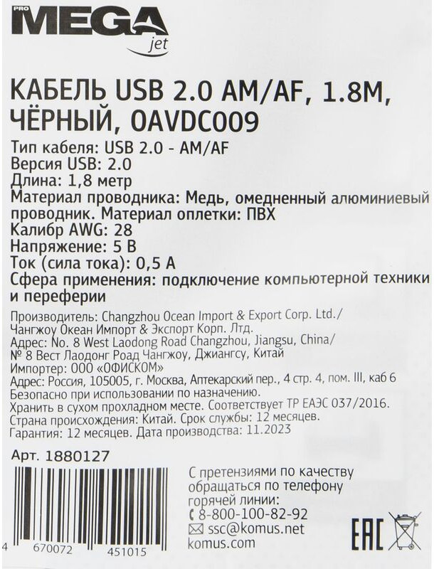 💳 Оплатить за товар можно при получении 🇰🇿 Есть бесплатная доставка по Казахстану от 1 дня 🎁 Копите бонусы с каждой покупки Удлинительный кабель USB 2.0 AM/AF длиной 1,8 м предназначен для подключения и расширения интерфейса между компьютером и периферийными устройствами. Подходит для клавиатур, мышей, принтеров, флеш-накопителей и других устройств с USB-разъёмом. Кабель обеспечивает стабильную передачу данных и надёжен в повседневном использовании благодаря качественным материалам и стандартной совместимости USB 2.0. Материал проводника: омеднённый алюминий и медь; оплётка — прочный ПВХ, калибр: 28 AWG, поддержка напряжения: 5 В, сила тока: до 0,5 А. |