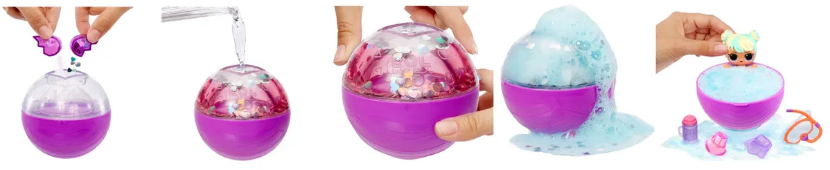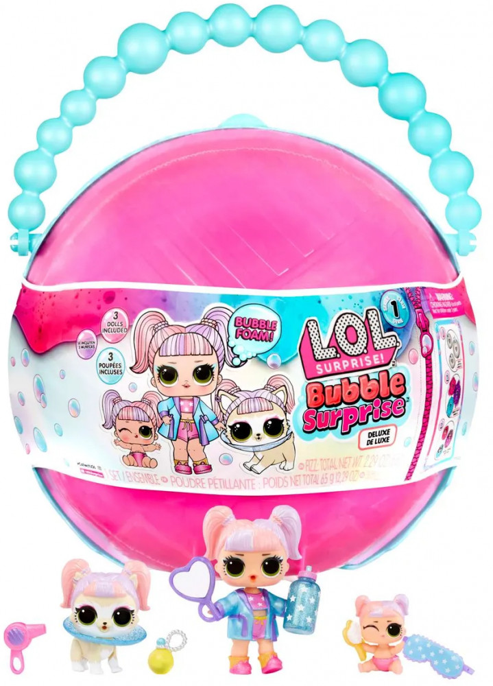 Кукла LOL Surprise Bubble Deluxe в непрозрачной упаковке (Сюрприз). Набор игровой L.O.L. Surprise Bubble Surprise Deluxe подарит море удовольствия и много приятных минут увлекательной игры! Игрушка представляет собой большую розовую полусферу с ручкой из бусинок. Внутри находятся 3 симпатичных сердечка на которые надо лить воду. После добавления жидкости наблюдайте за блестящими пузырьками, меняющими 3 раза цвета. Во время пенной вечеринки появятся 3 куколки ограниченной серии. А еще там прячутся детализированные аксессуары, одежда и обувь для малышей! У каждой фигурки есть сюрприз, проявляющийся в воде! Покорми малыша и узнай плюётся он, плачет или звенит. Искупай питомца и узнаешь как меняется его цвет! Игрушка подойдет детям от 4 лет. Батарейки не требуются.