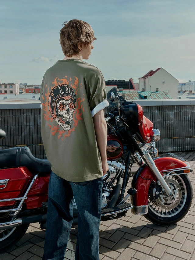 Эта стильная мужская футболка — отличный выбор для ярких и комфортных повседневных образов! Прямой силуэт обеспечивает удобную посадку, а спущенная линия плеча добавляет актуальности, создавая расслабленный и современный вид. Круглая горловина обработана обтачкой из рибаны, что помогает сохранить форму и эластичность даже после частых стирок. Короткие рукава делают модель универсальной, подходящей для любого сезона. Нижние срезы футболки и рукавов обработаны швом вподгибку, что повышает долговечность и эстетичность изделия. Футболка выполнена из натуральной хлопковой кулирки — мягкого, воздухопроницаемого материала, который приятно прилегает к коже, обеспечивая комфорт в течение всего дня. Эта модель легко сочетается с джинсами, шортами или спортивными брюками, создавая динамичные и стильные образы!