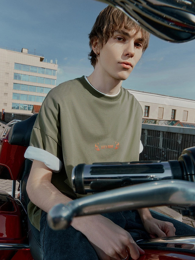Эта стильная мужская футболка — отличный выбор для ярких и комфортных повседневных образов! Прямой силуэт обеспечивает удобную посадку, а спущенная линия плеча добавляет актуальности, создавая расслабленный и современный вид. Круглая горловина обработана обтачкой из рибаны, что помогает сохранить форму и эластичность даже после частых стирок. Короткие рукава делают модель универсальной, подходящей для любого сезона. Нижние срезы футболки и рукавов обработаны швом вподгибку, что повышает долговечность и эстетичность изделия. Футболка выполнена из натуральной хлопковой кулирки — мягкого, воздухопроницаемого материала, который приятно прилегает к коже, обеспечивая комфорт в течение всего дня. Эта модель легко сочетается с джинсами, шортами или спортивными брюками, создавая динамичные и стильные образы!