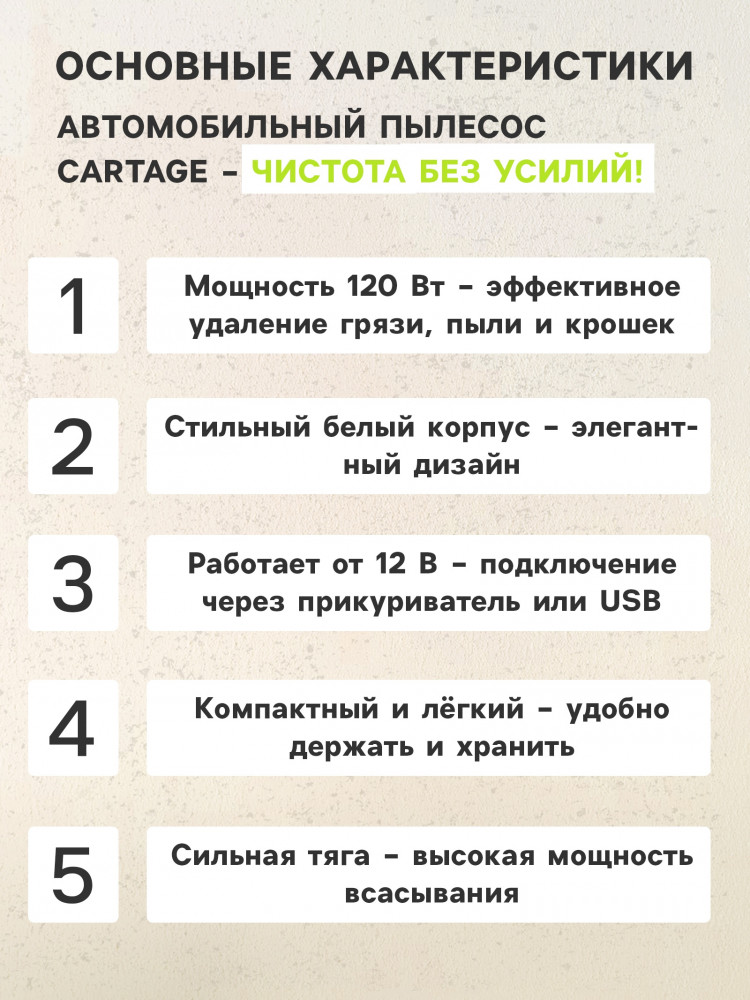 Cartage Пылесос автомобильный-25% +203