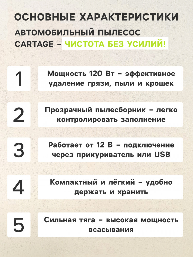 Cartage Пылесос автомобильный-25% +271