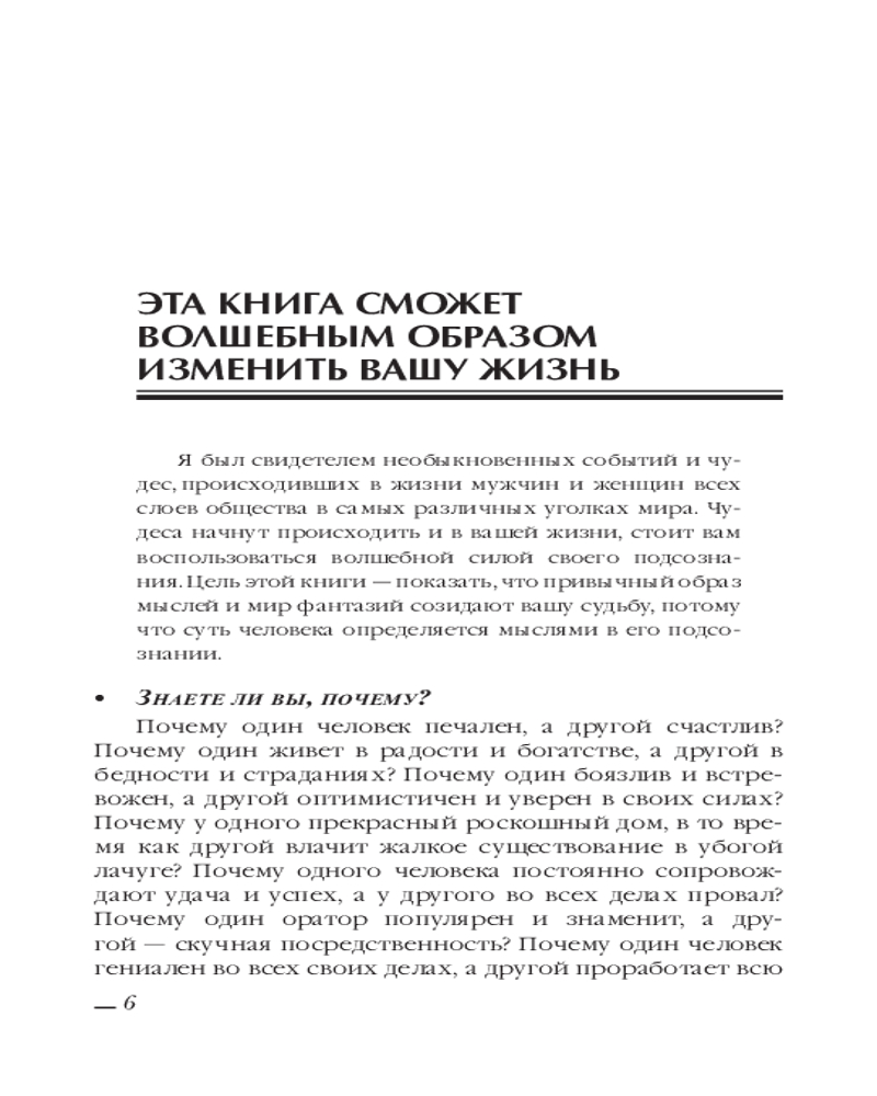 Книга просто космос. Читается на одном дыхании. Мне очень понравилась. Очень доступно объясняет все скрытые возможности подсознания. Если кто то смотрел фильм "Секрет", то он является только предисловием, а все остальное, написано в этой книге.