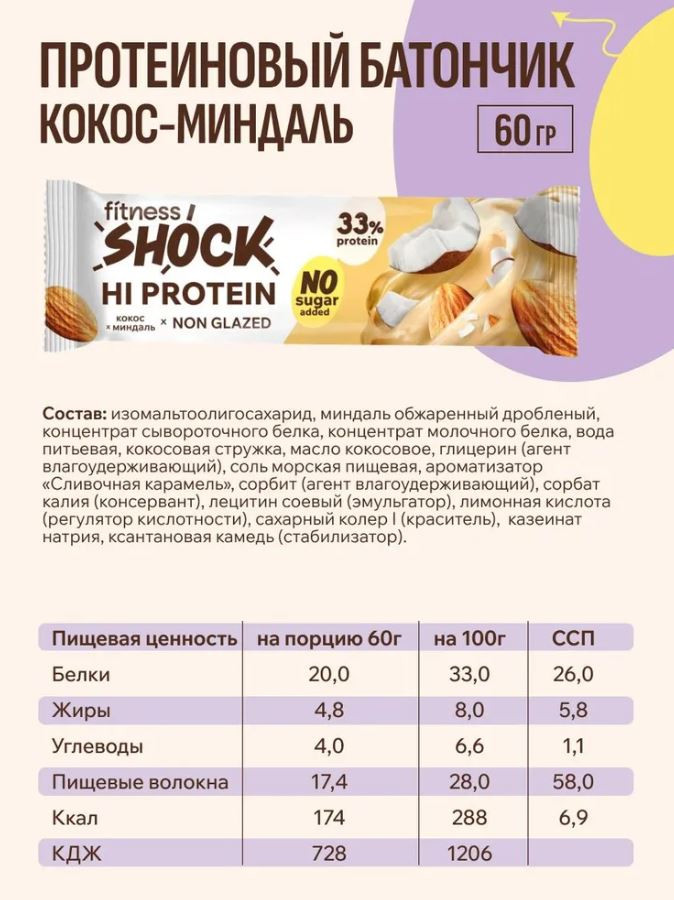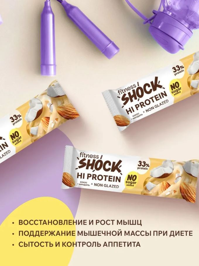 FitnesShock Батончик протеиновый «Миндаль-кокос»