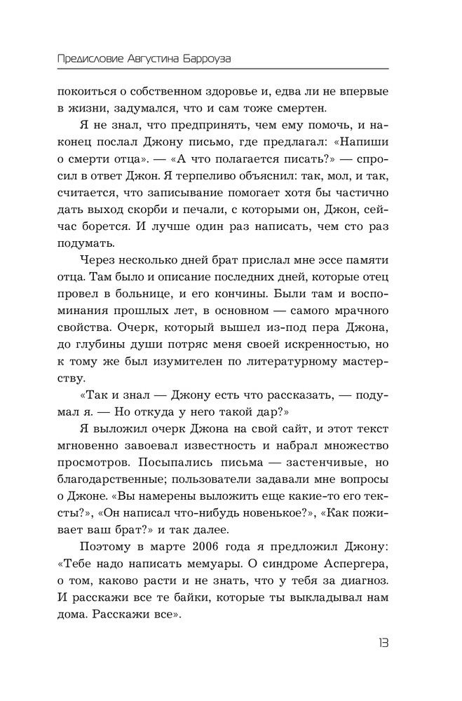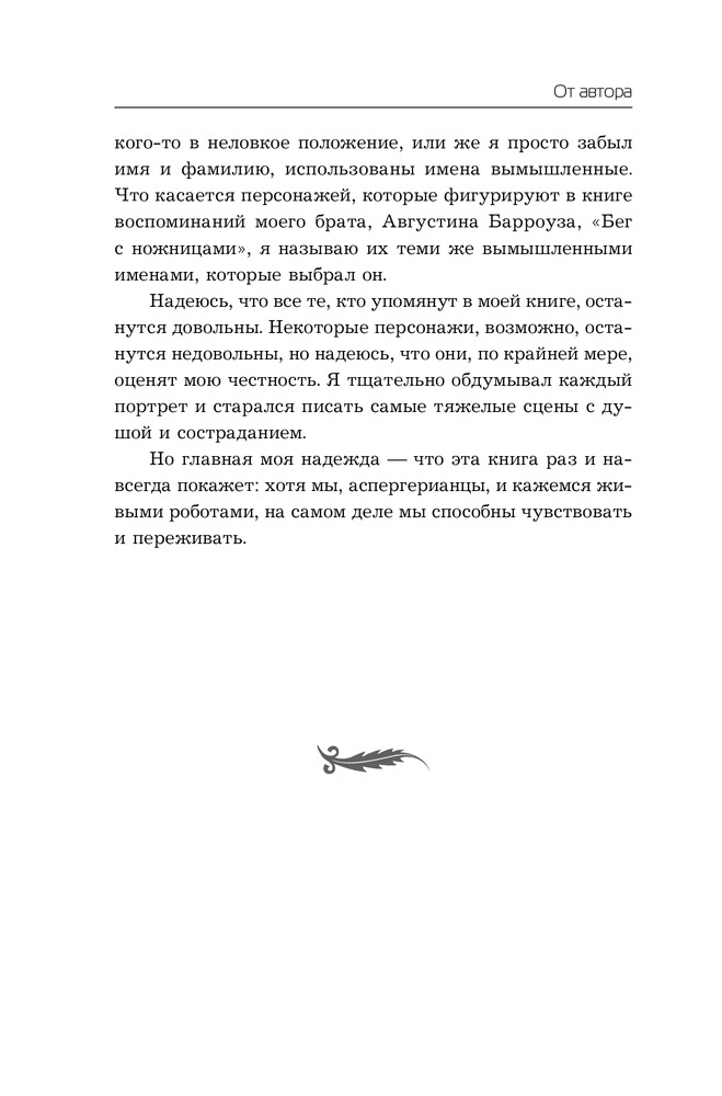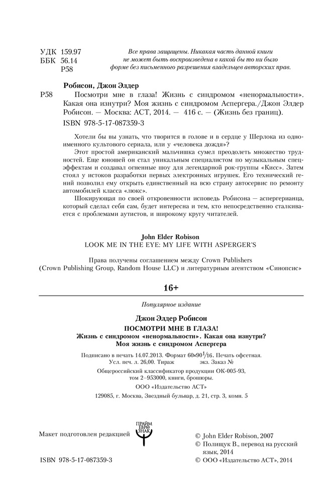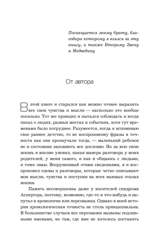 Шокирующая по своей откровенности исповедь Робисона - аспергерианца, который сделал себя сам, будет интересна и тем, кто непосредственно сталкивается с проблемами аутистов, и широкому кругу читателей. |
