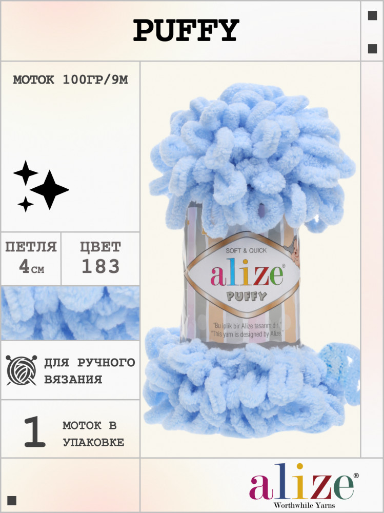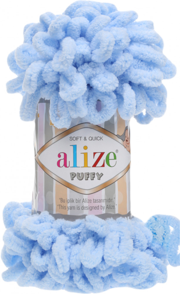 Alize Плюшевая пряжа c петельками «Puffy», цвет №183 Светло-голубой