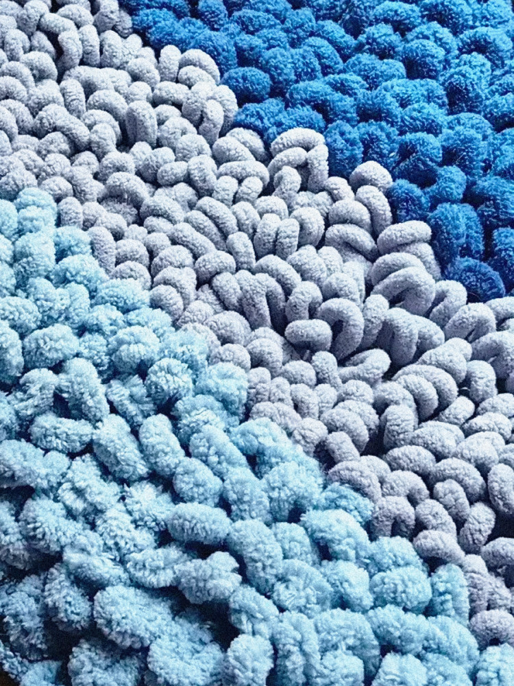 Технические характеристики: состав 100% микрополиэстер. Высота петли ~ 4 см. При желании можно использовать большие крючки или спицы. Ориентировочная плотность вязания 10 см х 10 см = 5 р х 5 п.