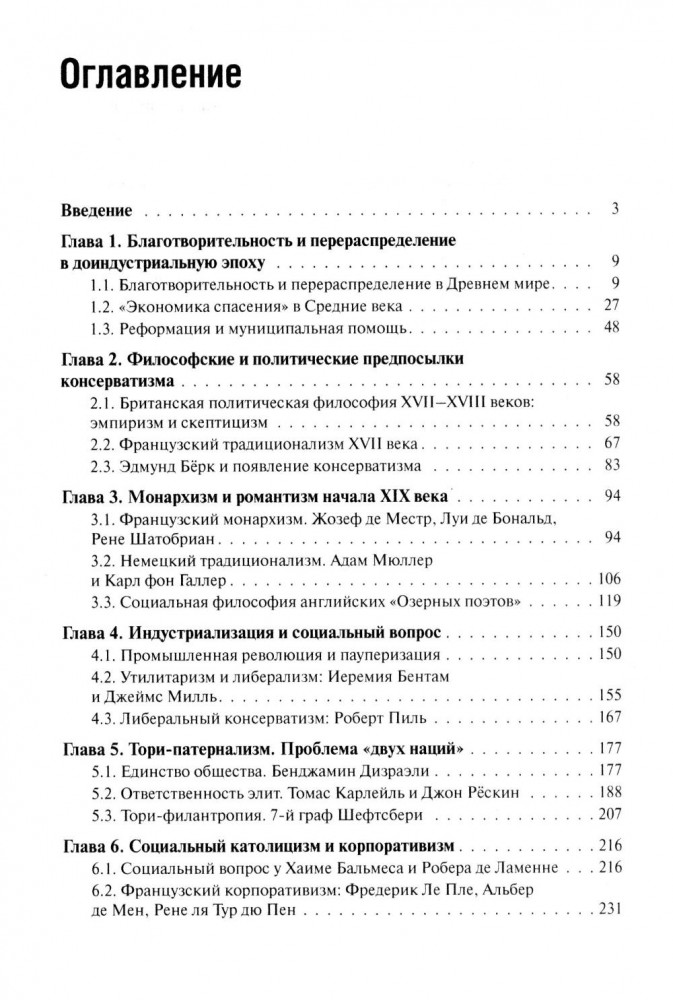 В книге показана история консервативной политической мысли и социальной политики. Рассматривается происхождение различных традиций консерватизма, а также развитие благотворительности и государственного регулирования мер социальной поддержки. Показано возникновение социального вопроса в XIX веке как проблемы, связанной с экономическим, социальным и политическим положением наемных рабочих. Показаны трансформации эпохи промышленной революции и демократизации. Становление социального государства в конце XIX — начале XX века связывается с консервативной политической философией, поскольку именно консервативные философы и политики стремились сохранить существующую организацию общества и сложившиеся отношения власти и собственности, для чего пытались использовать известные со Средних веков патерналистские механизмы страхования и поддержки. |