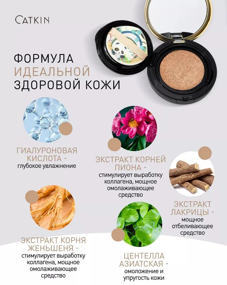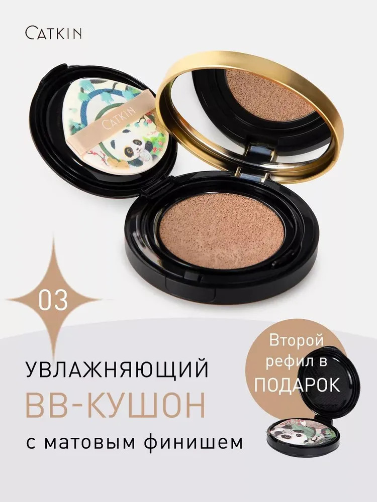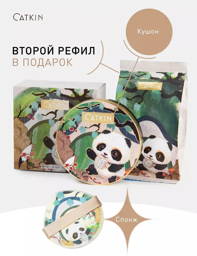 Catkin Кушон для лица тональный «Panda Land Coverage Cushion Foundation BB Cream», оттенок C03 Medium Beige