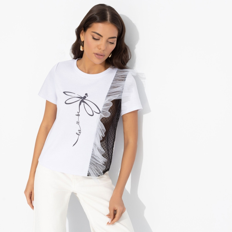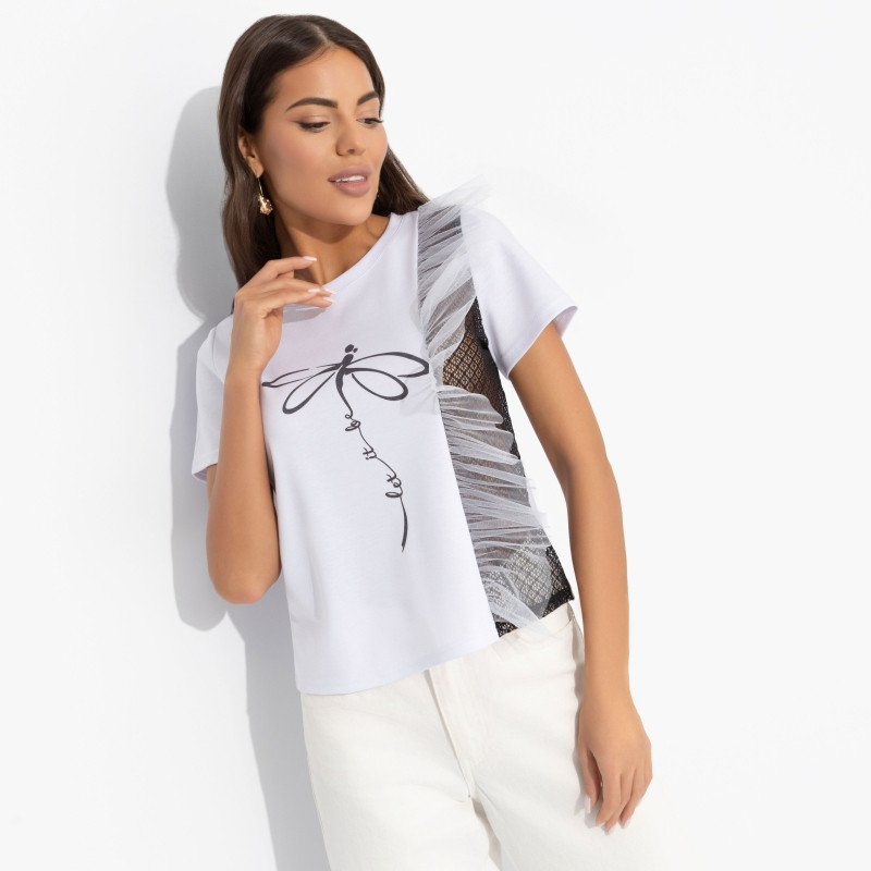 Charutti Футболка женская комбинированная с декором Завоюй меня (дуэт)