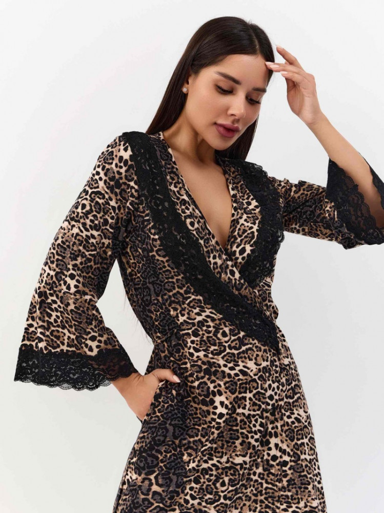 В целом модель понравилась,леопардовый яркий принт,рукава красивые,советую брать на 2 размера больше,эта модель чем свободнее,тем интереснее.Красивый халатик на каждый день, В фирмеDianida,приобрела еще и ночную сорочку из такой же ткани и принта,для комплекта