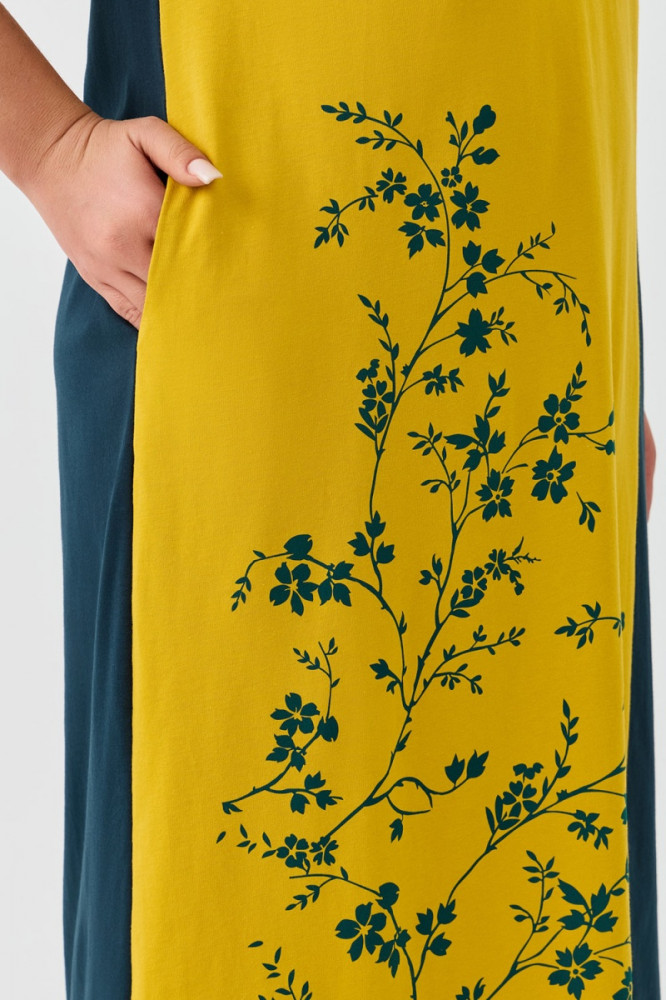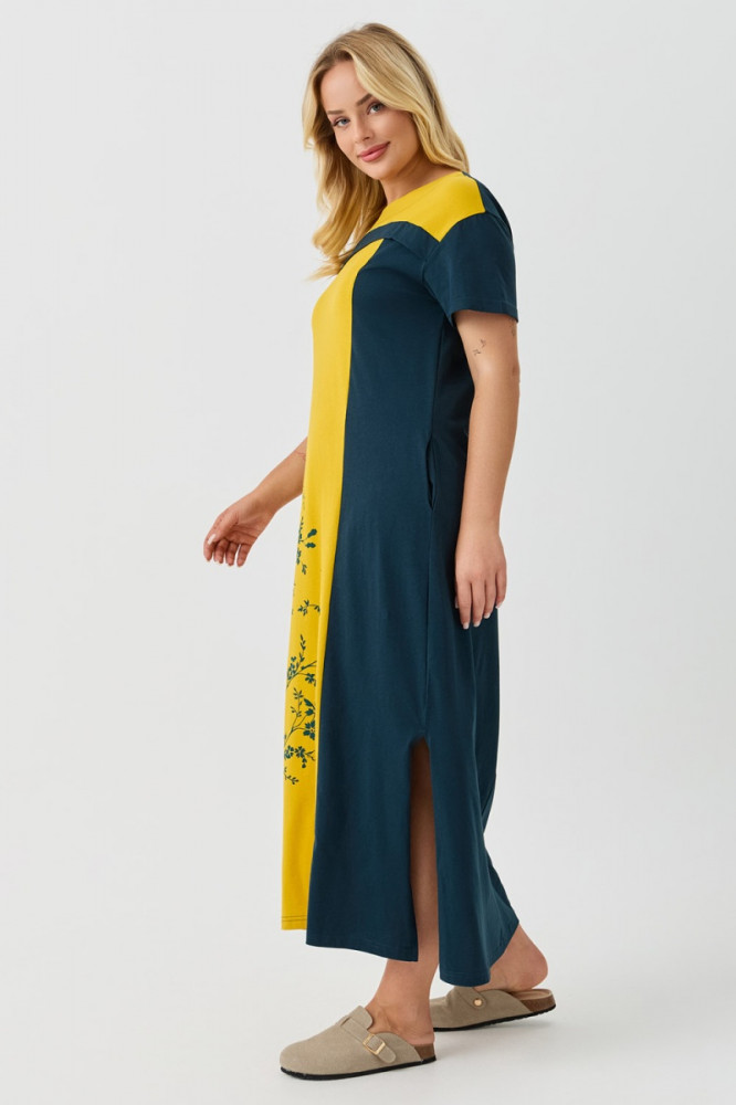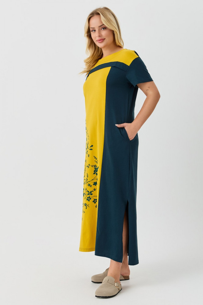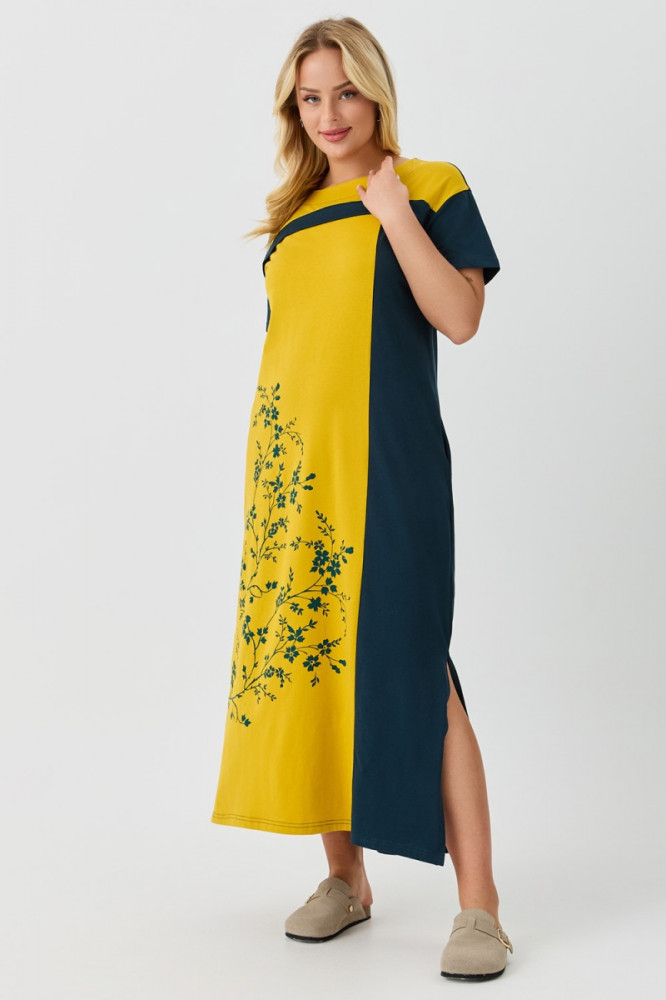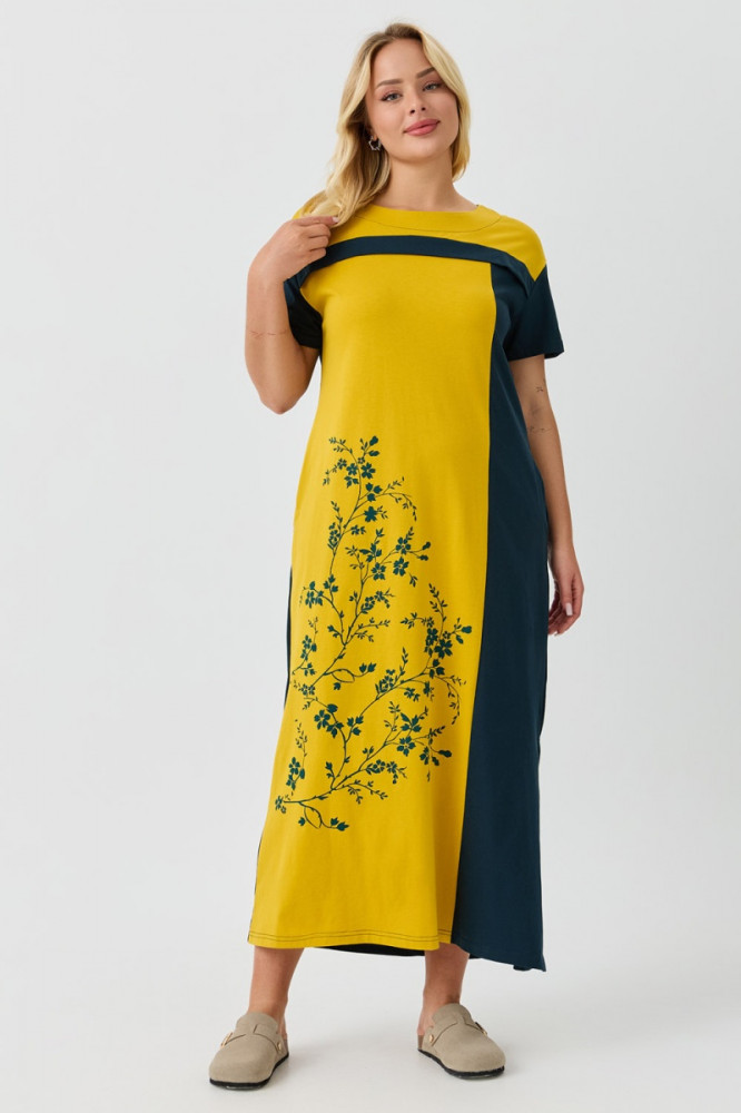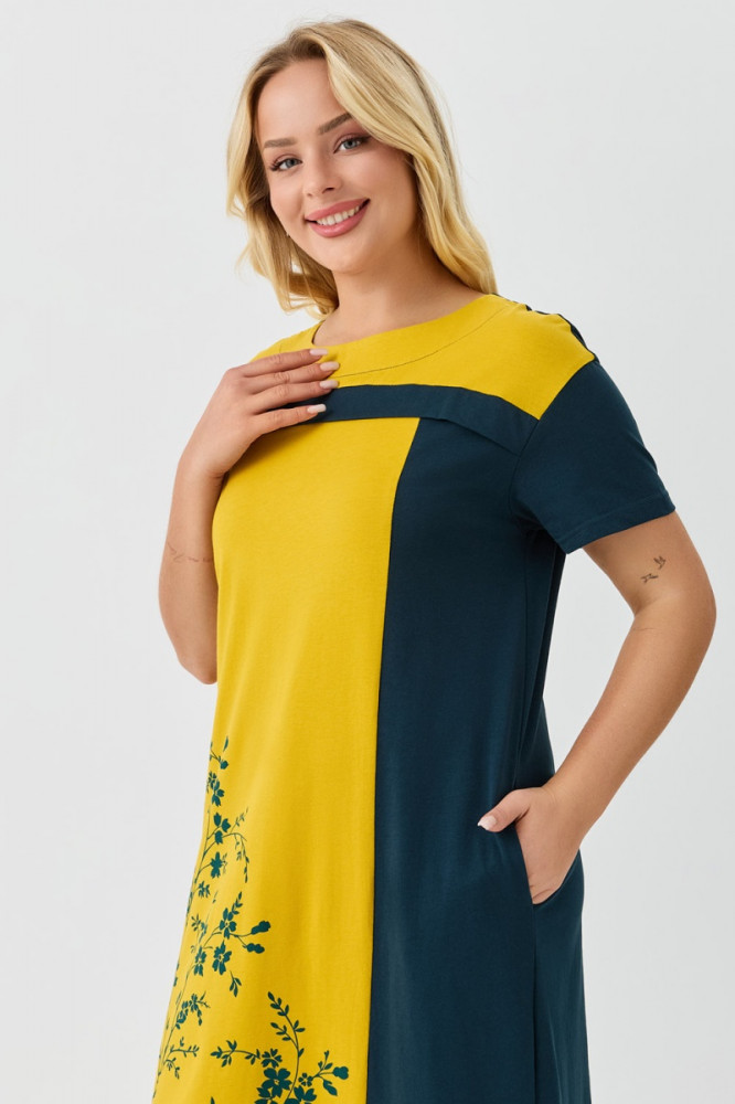 Хорошее платье. Солнечное, нормальный фасон, хорошо сидит, чуть длинновато, но это устранимо, х/б трикотаж. Спасибо.