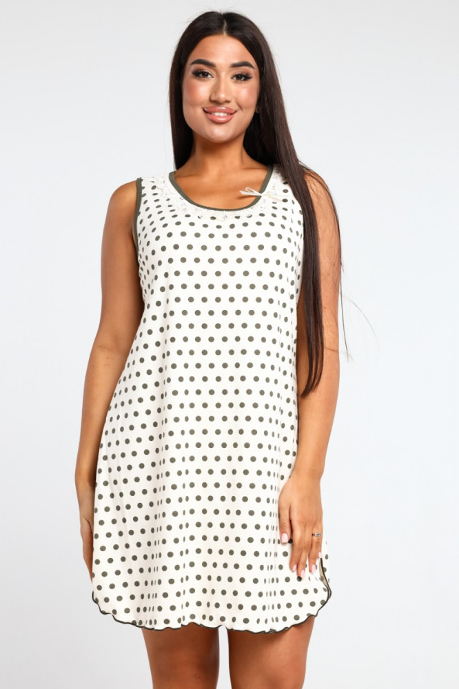 Сорочка ночная без рукавов, с округлым вырезом горловины. Сшита из материала мелисса. Одной из особенностей этого материала является его прекрасная эластичность, которая обеспечивает идеальную посадку и свободу движения.