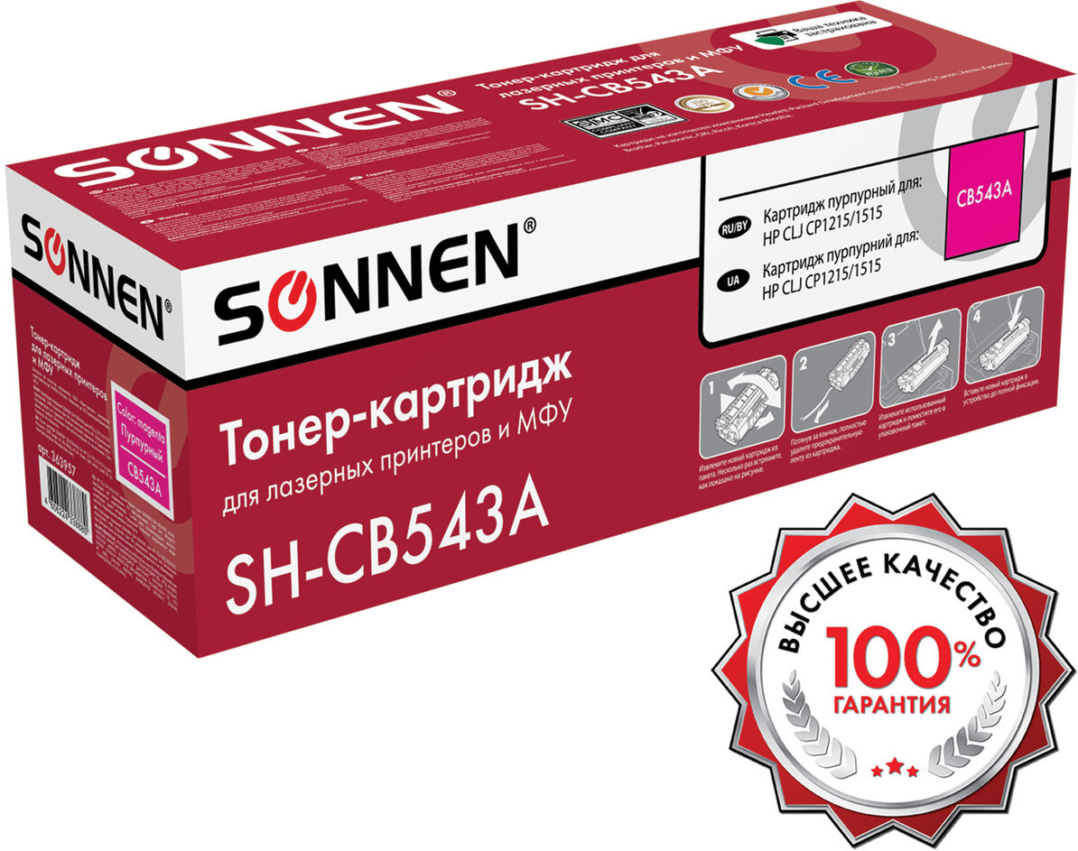 💳 Оплатить за товар можно при получении 🇰🇿 Есть бесплатная доставка по Казахстану от 1 дня 🎁 Копите бонусы с каждой покупки Совместимый картридж Sonnen (SH-CB543A) для HP Color Laser Jet CP1215/1217/1510/1514/1515n/1518ni CM1312/1312n/1312nfi. |