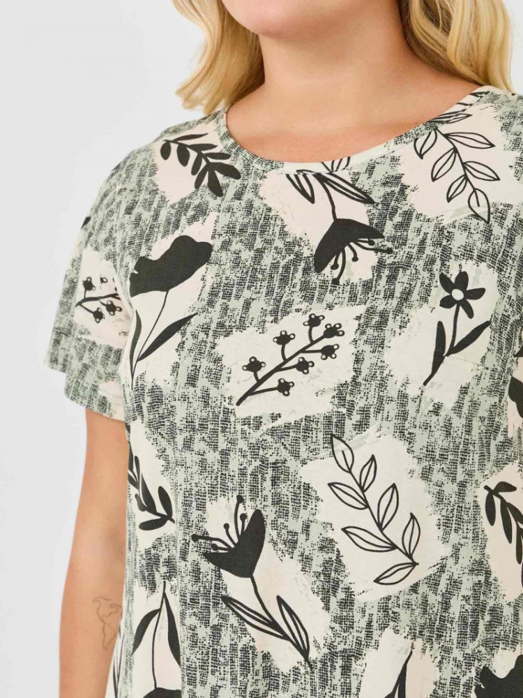 Платье можно смело брать на пару размеров меньше, так как оно книзу широкое, а плечи облегает элегантно. Я ношу его вне дома пока расцветка яркая. На свой 52 размер взяла 50, но думаю и 48 подошел бы великолепно