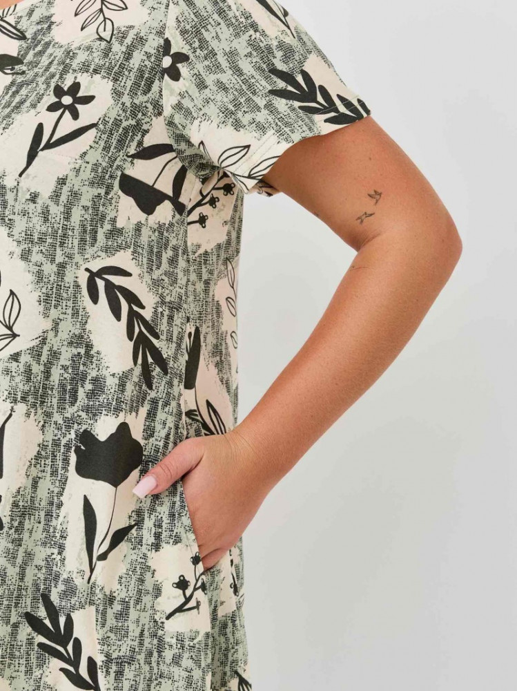 Брала как домашнее платье. Эту расцветку и хаки. Очень довольна покупкой. Свободное и в то же время стройнит. Прекрасная цена, пошив. И натуральная ткань. Мужу тоже нравится.