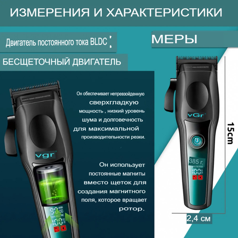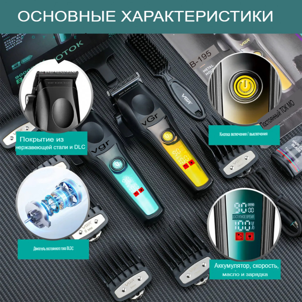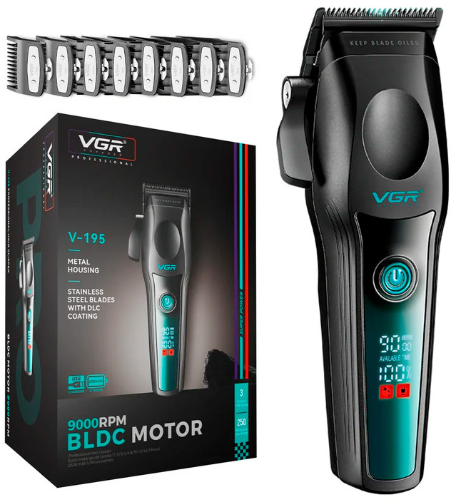 Машинка для стрижки волос VGR V-195 Professional Salon Series — идеальный выбор для профессионалов и домашних пользователей, которым нужна первоклассная производительность стрижки. Машинка оснащена двигателем BLDC с частотой вращения 9000 об/мин и лезвиями из нержавеющей стали с покрытием DLC , обеспечивает точную, плавную и легкую стрижку. Ее конический рычаг позволяет регулировать длину стрижки для создания индивидуальных причесок. Оснащенная литиевой батареей емкостью 2500 мАч , она обеспечивает впечатляющие 250 минут работы всего за 3 часа зарядки . Светодиодный дисплей отображает процент заряда батареи, скорость и напоминания о масле, обеспечивая удобство эксплуатации. Благодаря 8 металлическим направляющим гребням и зарядке через USB Type-C, разработана в соответствии с самыми высокими стандартами ухода за волосами, что делает ее идеальной для салонного и личного использования.