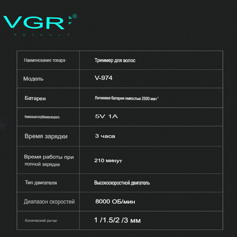 Триммер VGR — это высококачественный электрический триммер, предназначенный для стрижки волос любой длины. Он обладает рядом уникальных характеристик, которые делают его идеальным выбором для домашнего использования или в профессиональных салонах.