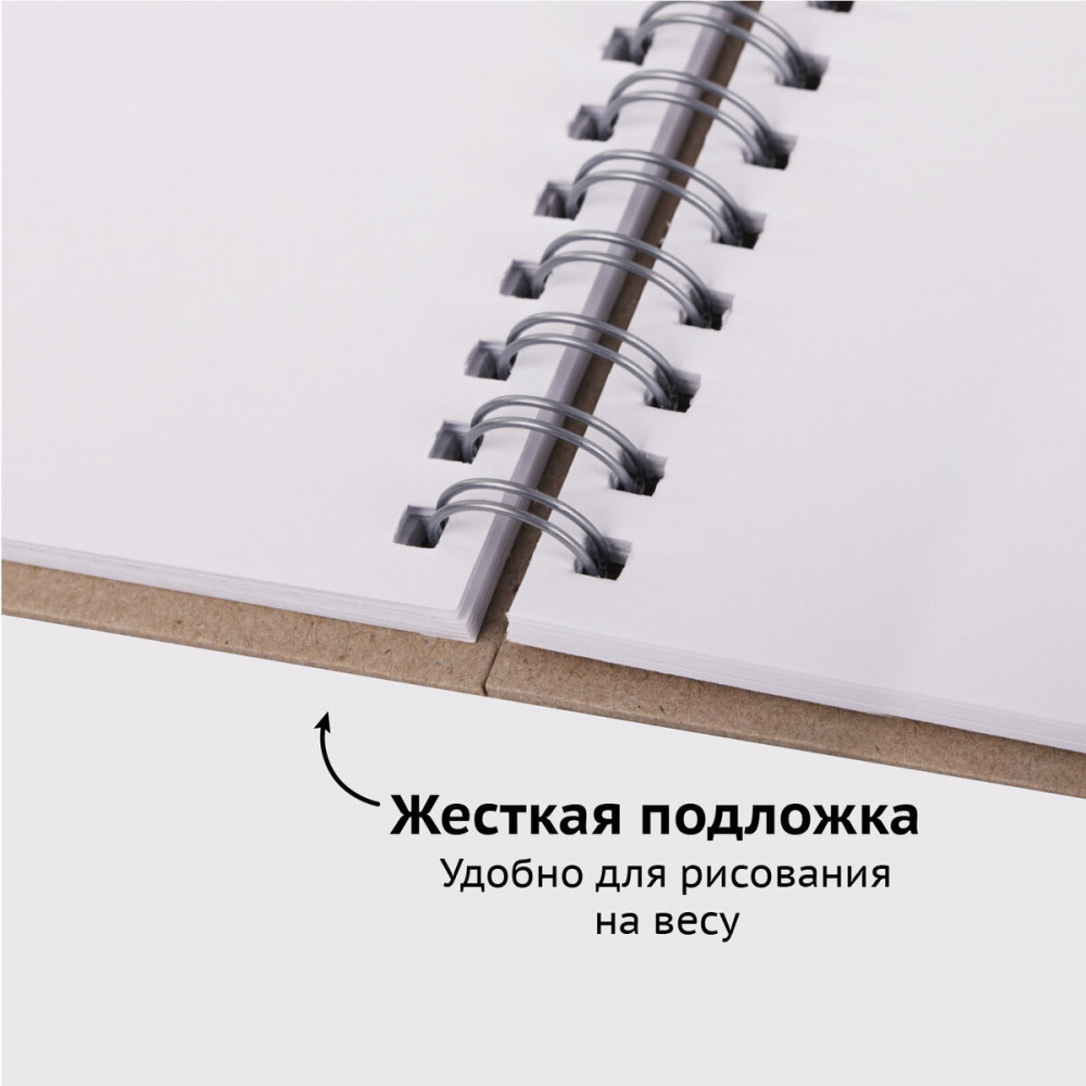Изделие имеет размер 200×290 мм и содержит 20 белоснежных листов плотностью 200 г/м² с мелкозернистой текстурой. Листы удобно скреплены спиралью, что позволяет переворачивать их на 360°. Привлекательная твердая обложка и жесткая задняя подложка позволяет делать зарисовки и наброски на весу. Бумага обеспечивает равномерную акварельную заливку и контролируемый край, впитывает воду, но при этом слабо деформируется, стойка к вымыванию, не съедает цвет, оставляя яркие цвета неизменными, быстро сохнет.