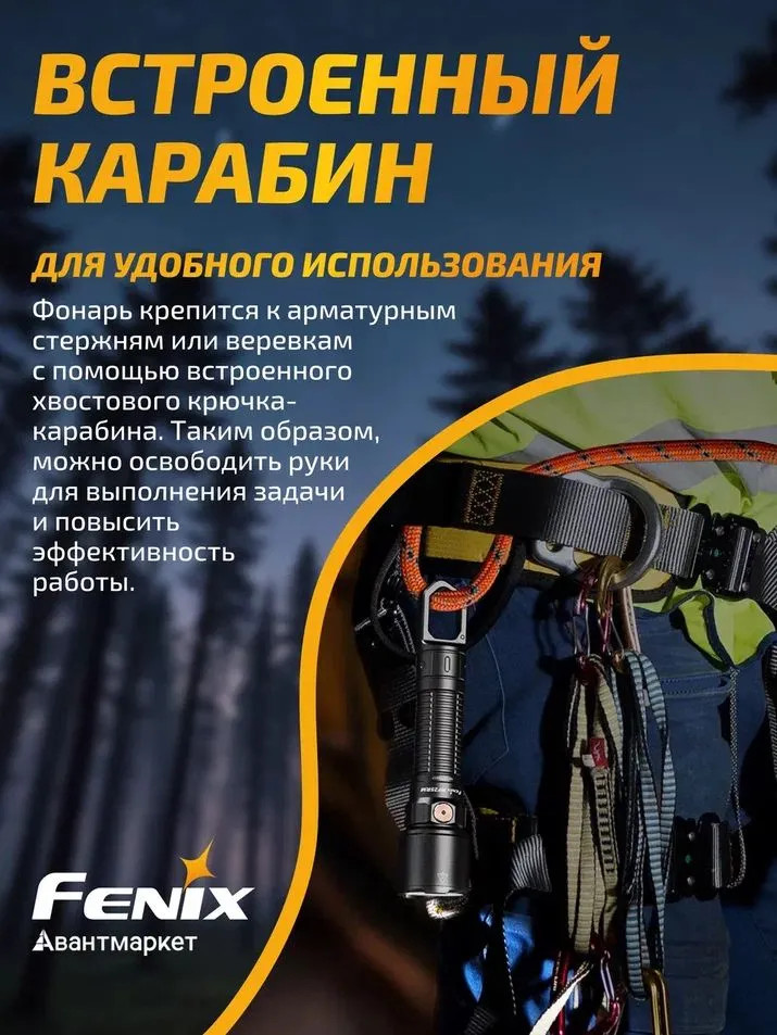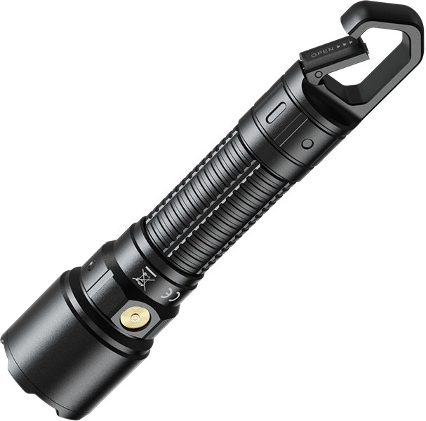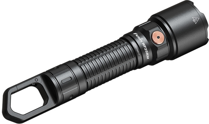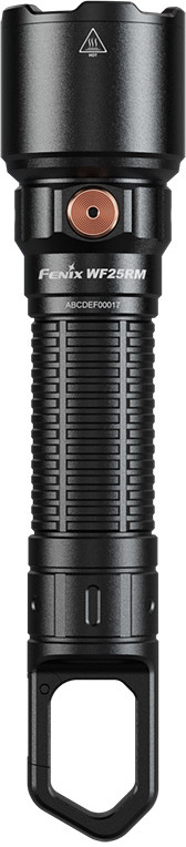 Для удобства использования в фонаре предусмотрен хвостовой крюк-карабин. Он позволяет повесить прибор на экипировку или закрепить над рабочим местом, освободив руки для текущей задачи. Также фонарь обладает функцией защиты от высокой температуры. Если расстояние до освещаемого объекта менее 1 см, то Fenix WF25RM переходит в режим Eco, снижая яркость освещения и защищая окружающие предметы от повреждения из-за высокой температуры. Также эта функция снижает нагрузку на зрение при работе на близком расстоянии.