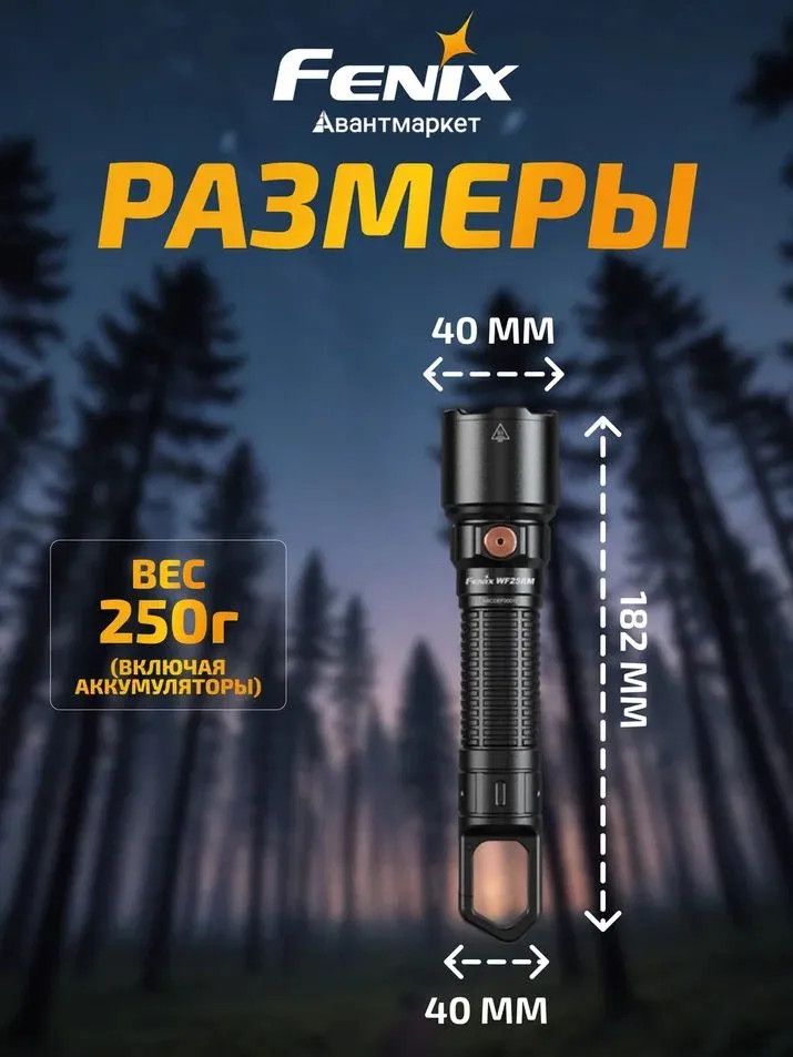 В Fenix WF25RM предусмотрена мгновенная активация режима повышенной яркости Burst. Быстрое включение обеспечивает удобство работы, а также позволяет использовать фонарь в чрезвычайных ситуациях.