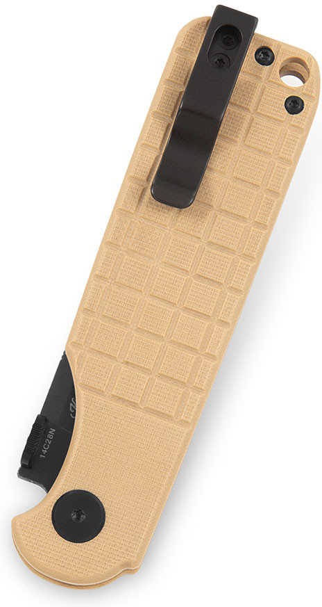 Клинок модели Bestech Glok выполнен из стали 14C28N. Эта марка разработана специально для использования в производстве ножей. Высокая твердость 59 HRC в сочетании с большим запасом прочности и коррозионной стойкостью делает лезвие из стали 14C28N подходящим для выполнения самых разных задач, от нарезки продуктов до строгания древесины. Благодаря обработке методом blackwash лезвие не бликует на солнце и на нем не видны мелкие царапины.