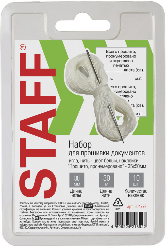 💳 Оплатить за товар можно при получении 🇰🇿 Есть бесплатная доставка по Казахстану от 1 дня 🎁 Копите бонусы с каждой покупки Набор для прошивки документов в блистере Staff предназначен для ручного скрепления архивируемых документов. Набор в герметичной упаковке включает в себя иглу, нить для прошивки и наклейки. Игла — 80 мм. Нить для прошивки — 30 м, диаметр 0,7 мм. Наклейки «прошито, пронумеровано» — 10 шт. Упаковка — блистер с европодвесом. Покупайте набор для прошивки документов в блистере Staff по выгодной цене и будьте на шаг впереди! |
