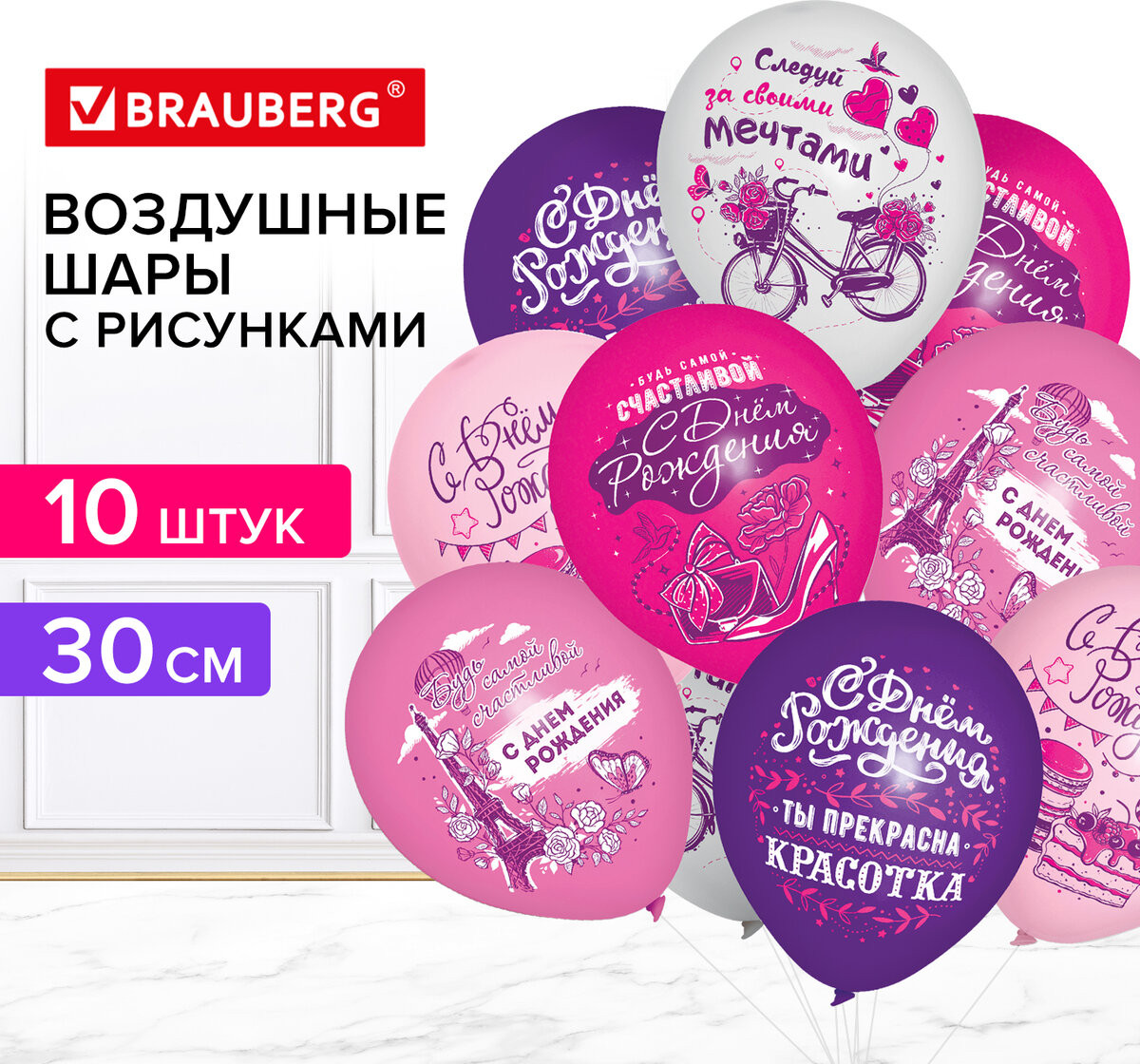 Brauberg Набор воздушных шаров с принтами «Для нее»-20% +15