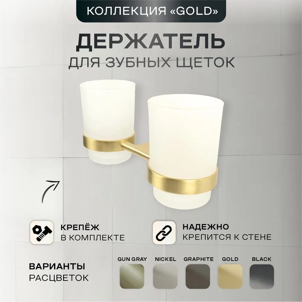 Комплектация: стакан для зубных щеток — 2 шт., держатель с декоративными кольцами, комплект крепежей.