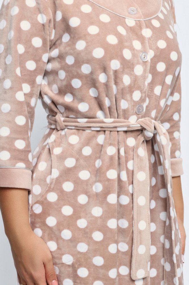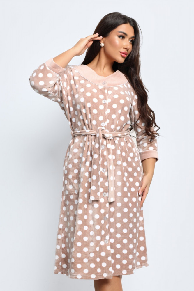 теплый, уютный халат, на пуговицах - то, что искала, и размер подошел. Расцветка - горох - сейчас в тренде