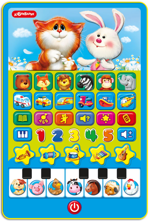 Азбукварик Игрушка развивающая «Мои друзья зверята»В данный момент этот товар отсутствует в продаже. Возможно, у нас найдется аналогичный или похожий товар здесь. Серия: Игровой планшетик Игровой планшетик «Мои друзья зверята» — идеальная игрушка для любознательного малыша. Ведь в ней есть всё, что нужно для весёлой игры и всестороннего развития: разнообразие обучающих тем, игры, сказки, песенки, танцевальные мелодии и забавные фразы. Хотите узнать какие? Самые популярные и интересные! Например, сказки: «Курочка Ряба», «Репка», «Колобок»; любимые песенки: «Если весело тебе, то делай так», «Вместе весело шагать», «Облака», и другие. А ещё забавные развивающие игры: «Весёлые звуки», «Загадайка», «Позвони зверятам», «Волшебное пианино», которые надолго займут малыша, и помогут познакомиться с цифрами, животными, звуками музыкальных инструментов и даже раскрыть творческий потенциал малыша. 125 вопросов, понятий и звуков, 17 песенок и мелодий, 4 умные игры, 3 сказки — цифры говорят сами за себя. С игровым планшетиком «Мои друзья зверята» ребёнку точно не придётся скучать. Ведь он не только интересно, но и с пользой проведёт время! |