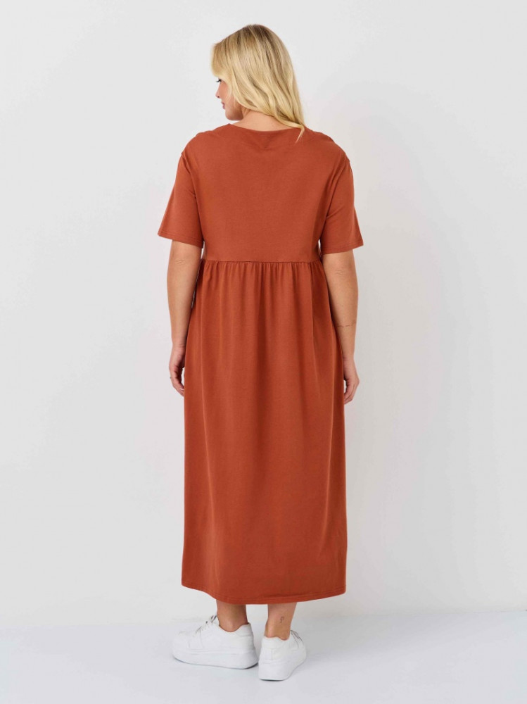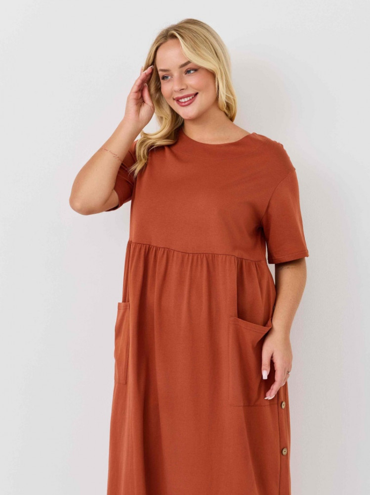 несмотря на то, что ткань оказалась более плотной, чем я ожидала, платье хорошо село, только немного длинновато, цвет интересный, фасон удачный, пошив аккуратный, покупка понравилась, спасибо всем причастным.