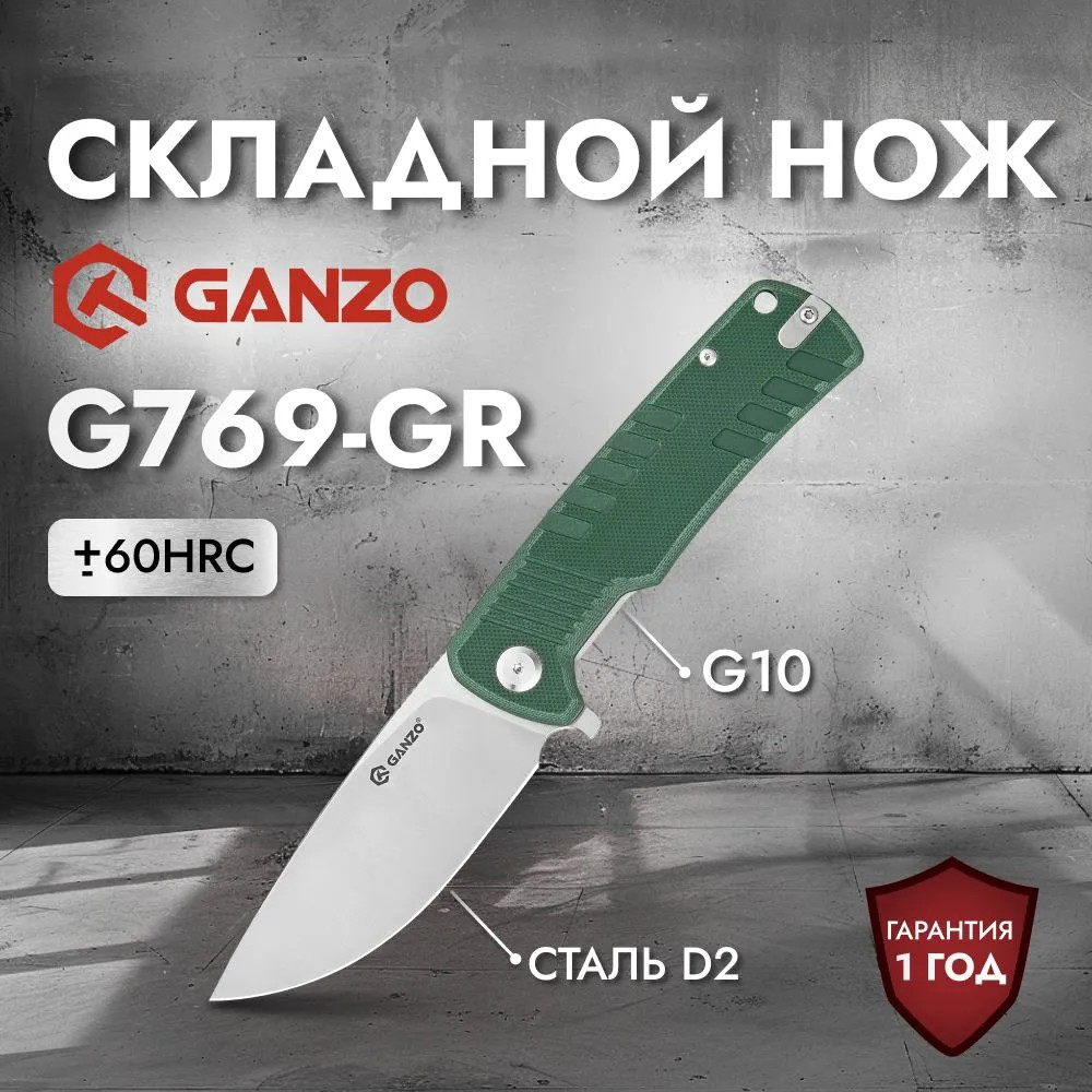 Ganzo G769-GR — это компактный складной нож, который подойдет как для повседневного использования, так и для туризма. Высокое качество материалов и прочная конструкция делают его надежным помощником в походе, на охоте или на рыбалке.