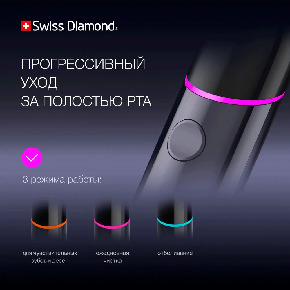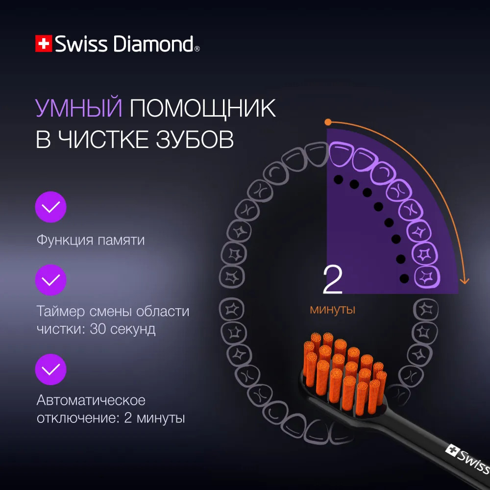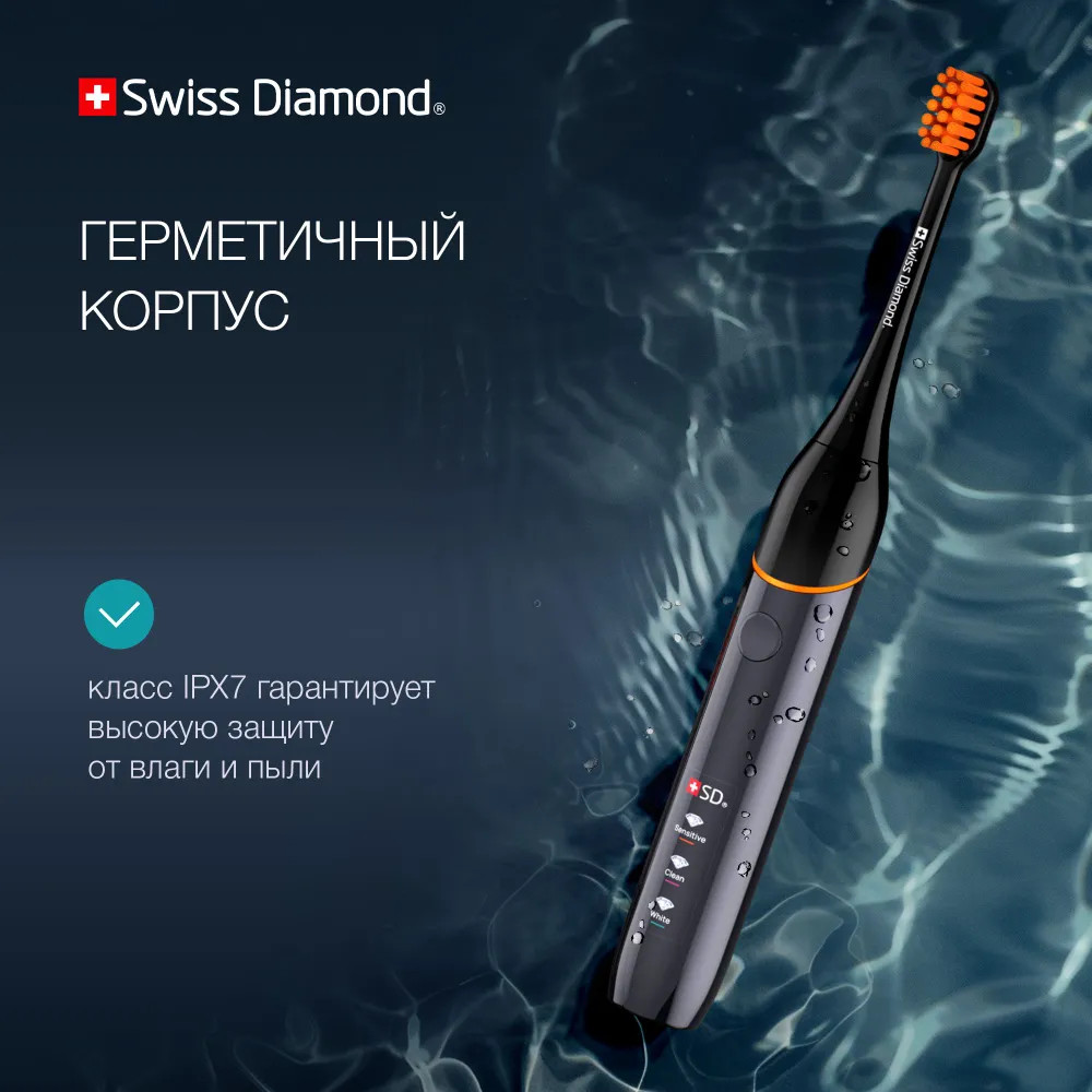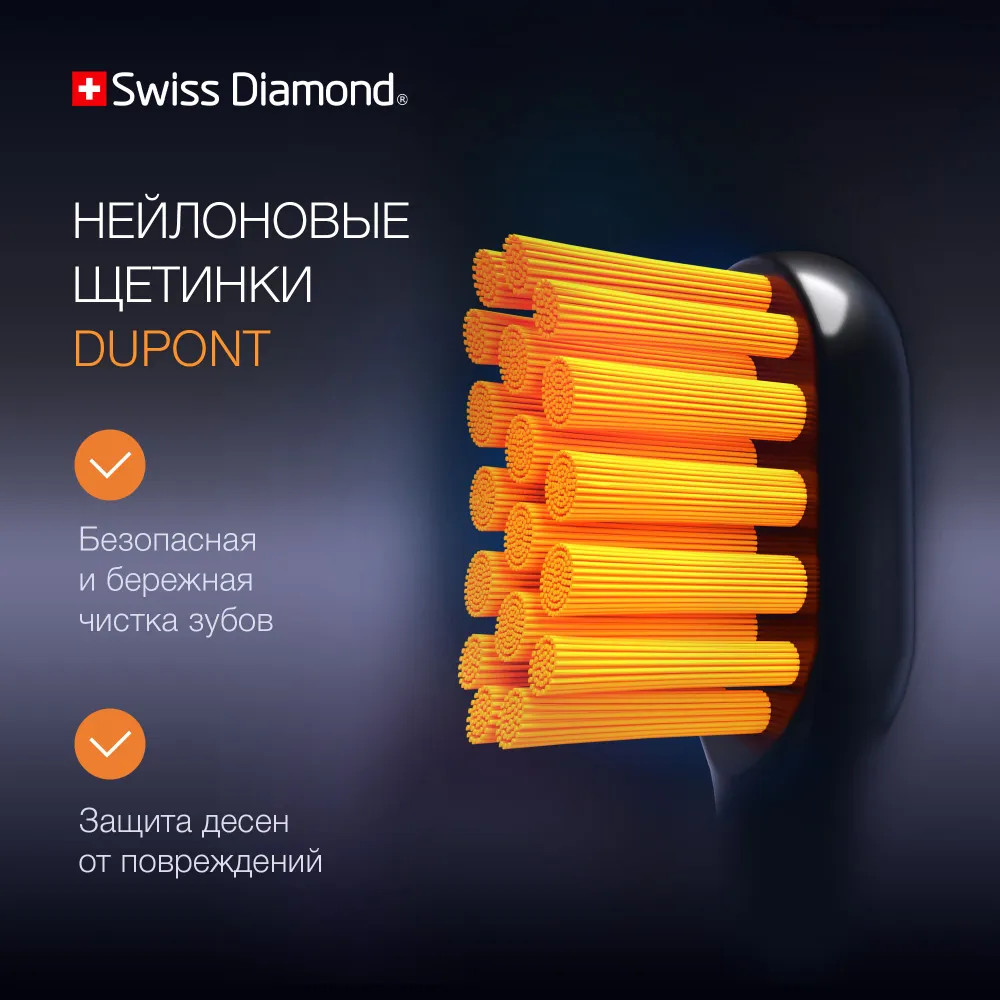 Ультразвуковая электрическая щетка Swiss Diamond Travel Care обеспечит 360 минут непрерывной работы — три месяца ежедневного использования утром и вечером.