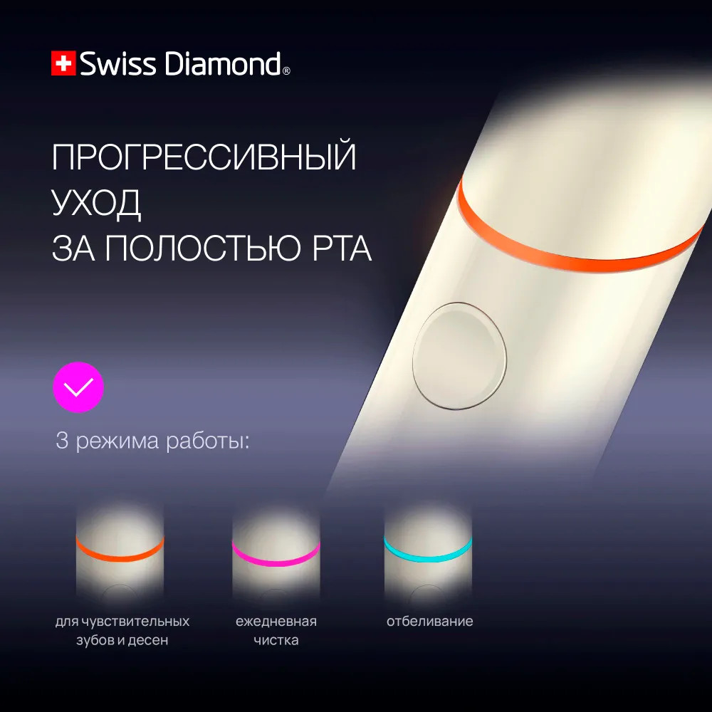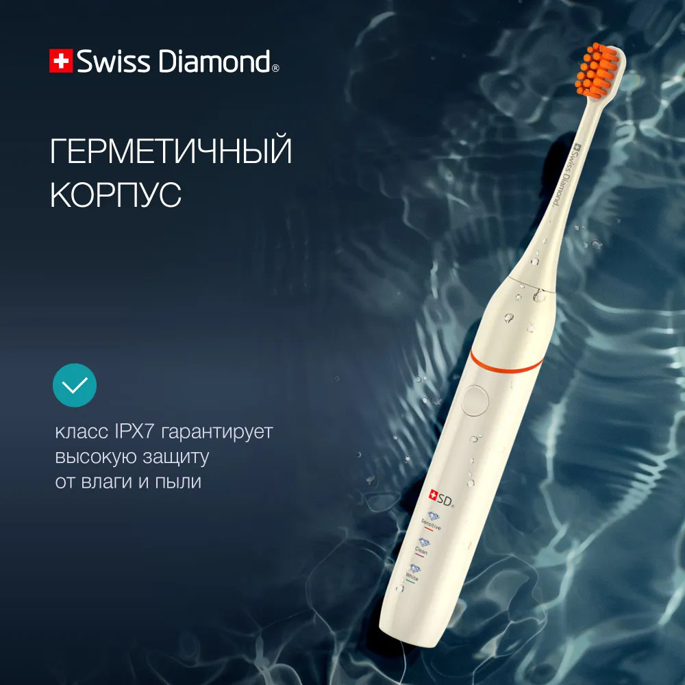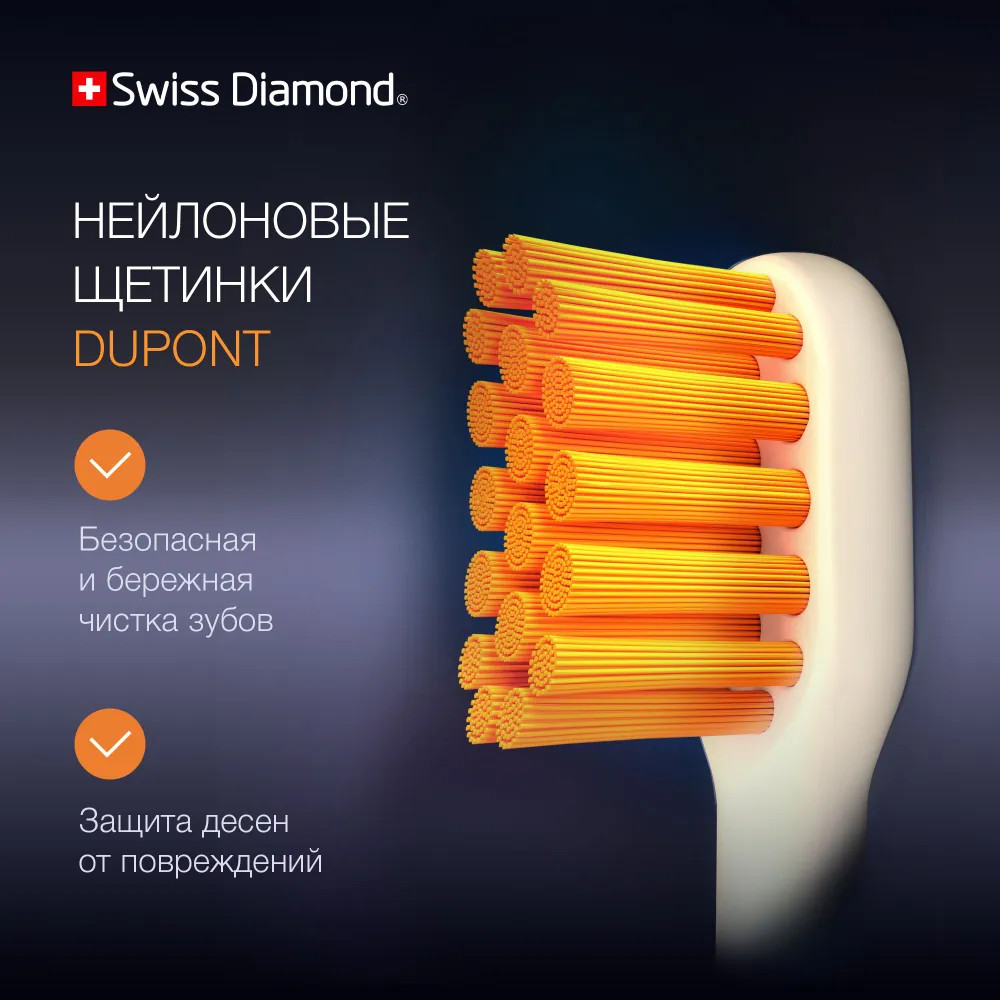 Ультразвуковая электрическая щетка Swiss Diamond Travel Care обеспечит 360 минут непрерывной работы — три месяца ежедневного использования утром и вечером.