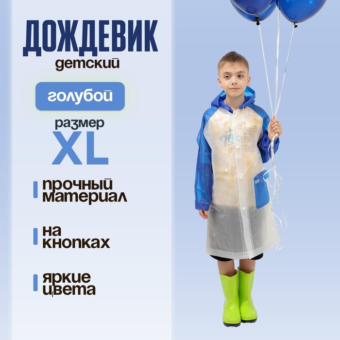 Детский дождевик — незаменимый аксессуар, с которым ребёнок останется сухим в любую погоду! Яркий компактный и лёгкий плащ удобно брать с собой. Он без труда застёгивается благодаря крепким пластиковым кнопкам, а капюшон защитит голову от дождя. Длина рукава (от основания шеи до низа) — 54 см. Ширина изделия под проймой — 49 см. Длина плаща по спинке — 69 см. Длина капюшона — 30 см.