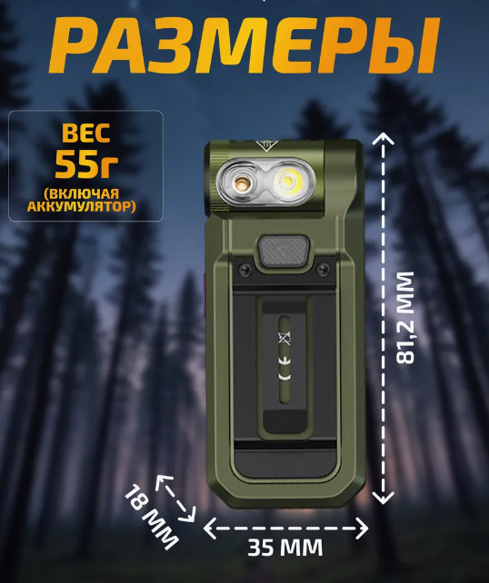 Легкий компактный фонарь оснащен встроенным аккумулятором емкостью 700 мАч, который заряжается через водонепроницаемый порт USB Type-C. Благодаря защитной конструкции, фонарь остается водонепроницаемым даже при открытой крышке USB-разъема.