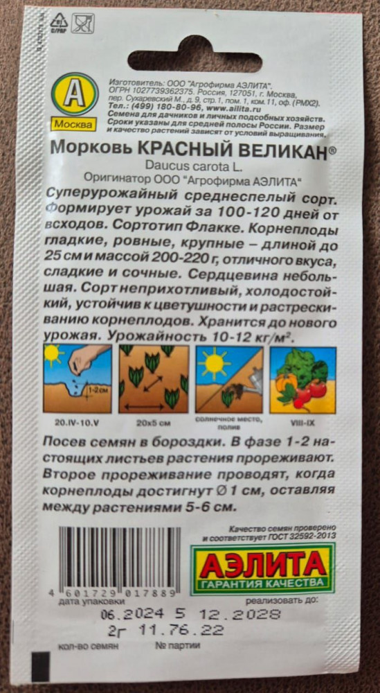 Аэлита Семена моркови «Красный великан»+7