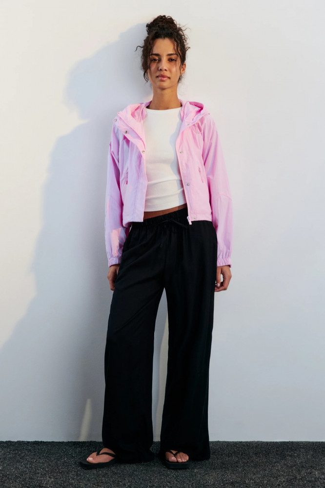 - Укороченная женская куртка-ветровка свободного кроя из легкой, гладкой плащевой ткани без утеплителя - Короткий воротник-стойка и объемный несъемный капюшон на утяжках для защиты от ветра. Длинные рукава-реглан с эластичными манжетами на резинке. Застежка на молнию и планку с кнопками по всей длине. Два прорезных кармана на молнии по бокам - Однотонная куртка-ветровка из новой летней коллекции. Стильная и суперудобная ветровка для трендовых повседневных луков и для комфортных занятий спортом, бегом, фитнесом и другими видами активности. Используй ее также в качестве непромокаемой верхней одежды на весну и лето в сочетании с любимым комфортным низом. Легкая куртка на молнии идеально подойдет для прогулок в прохладную погоду и выручит, когда совсем нечего надеть