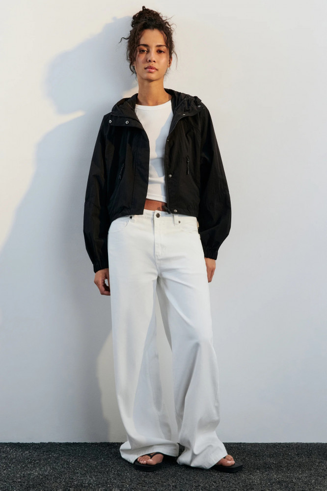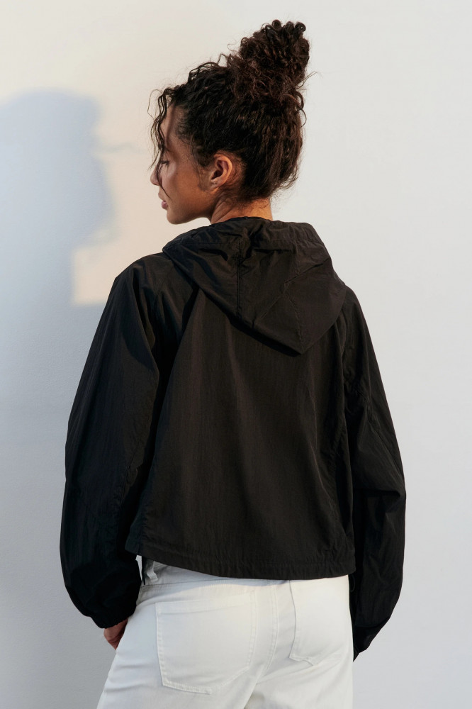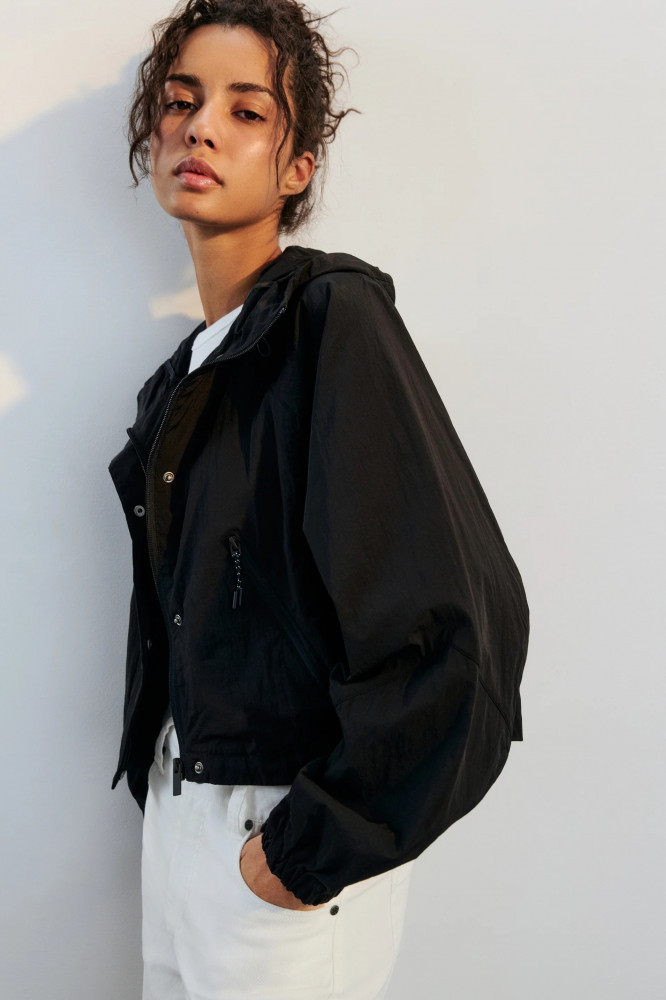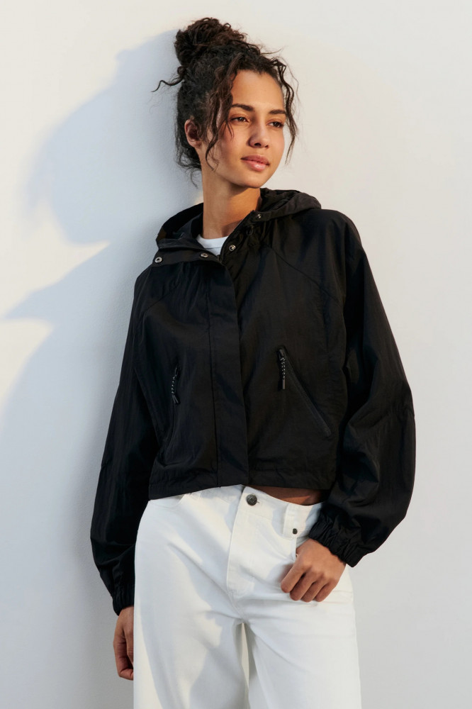 - Укороченная женская куртка-ветровка свободного кроя из легкой, гладкой плащевой ткани без утеплителя - Короткий воротник-стойка и объемный несъемный капюшон на утяжках для защиты от ветра. Длинные рукава-реглан с эластичными манжетами на резинке. Застежка на молнию и планку с кнопками по всей длине. Два прорезных кармана на молнии по бокам - Однотонная куртка-ветровка из новой летней коллекции. Стильная и суперудобная ветровка для трендовых повседневных луков и для комфортных занятий спортом, бегом, фитнесом и другими видами активности. Используй ее также в качестве непромокаемой верхней одежды на весну и лето в сочетании с любимым комфортным низом. Легкая куртка на молнии идеально подойдет для прогулок в прохладную погоду и выручит, когда совсем нечего надеть