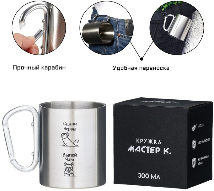 Мастер К Термокружка с карабином «Сдали нервы — выпей чаю»