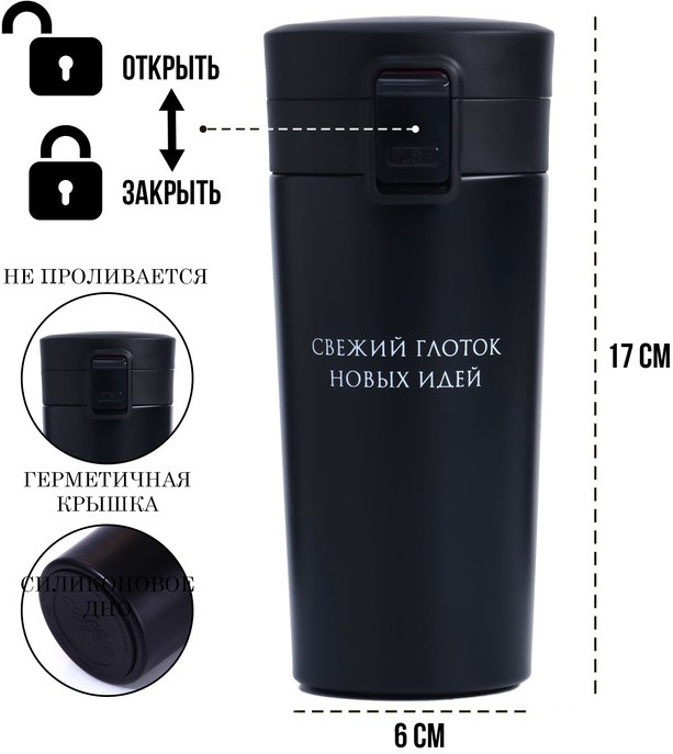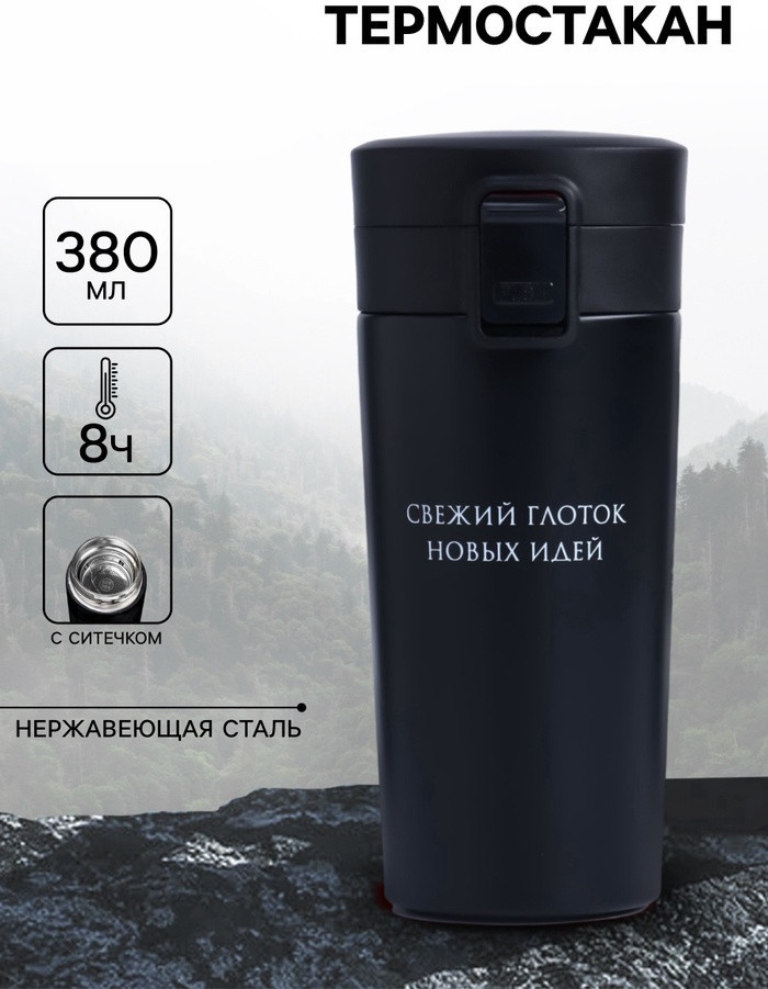 Мастер К Термокружка с ситечком «Свежий глоток новых идей»