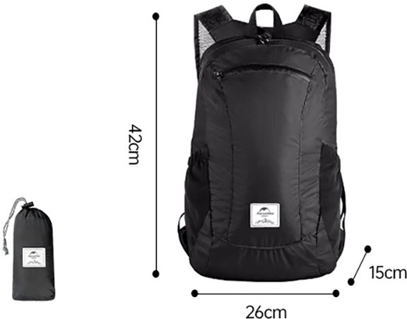 Naturehike 18L NH17A012-B Ultra-Light — это ультралегкий и практичный рюкзак, идеально подходящий для коротких путешествий, активного отдыха и повседневного использования. Он разработан для тех, кто ценит минимализм и комфорт в движении. Вес рюкзака всего 120 граммов, и он легко складывается в компактный чехол размером 12 × 7 см, который помещается в ладони. Его можно взять с собой в поездки в качестве дополнительной сумки, он не займет много места в вашем багаже. В разложенном виде его габариты составляют 42 × 23 × 17 см, а объем — 18 литров, что достаточно для хранения всех необходимых вещей в поездке или на прогулке.