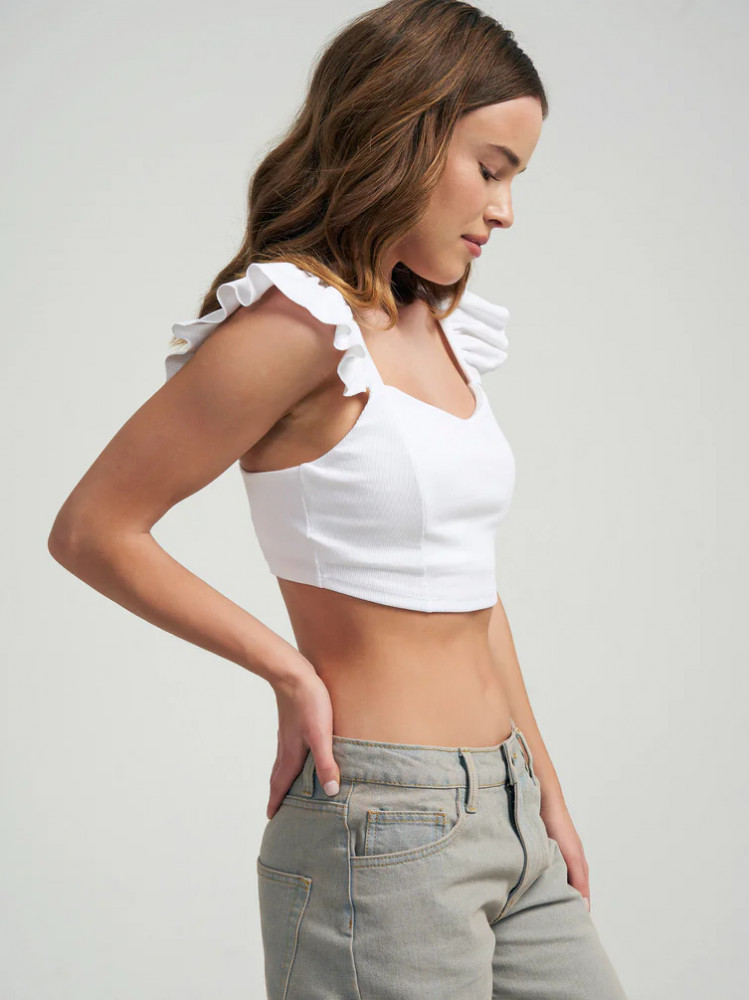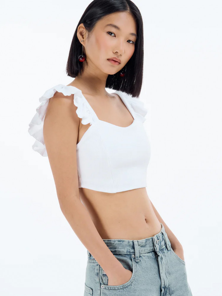 Топ женский короткий с рюшами на лямках | ТВОЕ