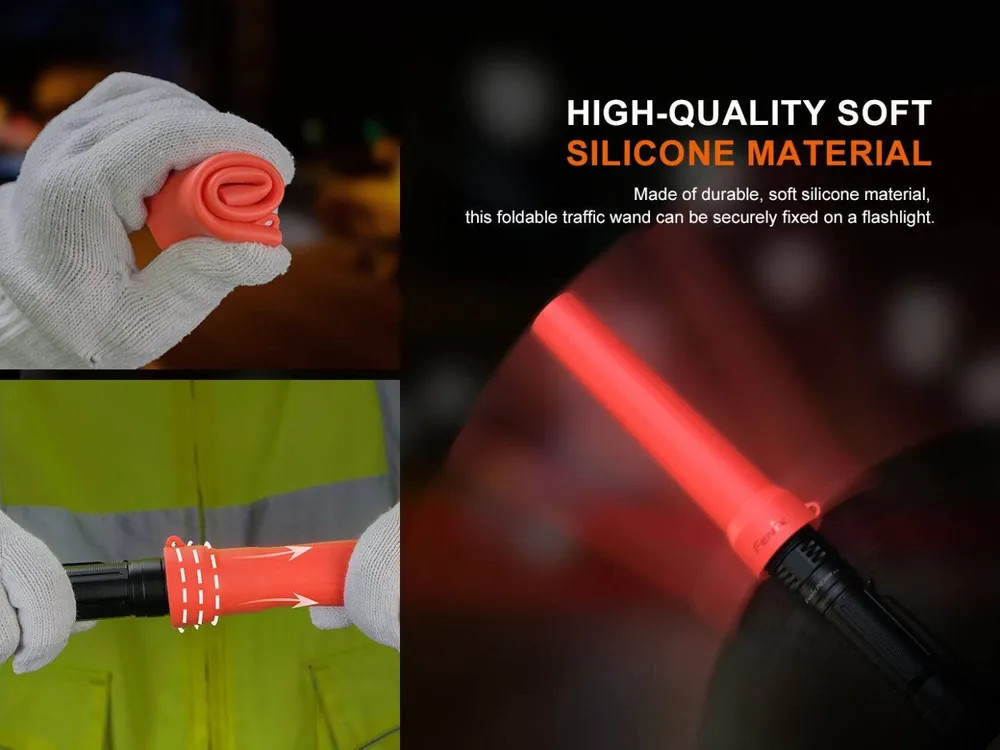 Сигнальный жезл Fenix AOT-04 подходит для мягкого освещения в различных рабочих ситуациях, например, для дополнительного освещения на строительной площадке. Он рассеивает сфокусированный луч фонаря. Жезл совместим с фонарями Fenix различных размеров, что делает его универсальным и удобным для использования. Открытая конструкция позволяет прикрепить сигнальный жезл к фонарю, чтобы превратить его в белый светильник для мягкого освещения в различных ситуациях, например, при строительстве или в походе. Внутренний диаметр AOT-04 составляет 43 мм, что делает его подходящим для различных фонарей. Применимый диаметр световой головки — 34/40 мм. Общая длина жезла — 152 мм. Гибкий качественный силикон можно компактно сложить для удобства хранения в кармане, сумке или рюкзаке. Отверстие для ремешка обеспечивает дополнительный комфорт при использовании.