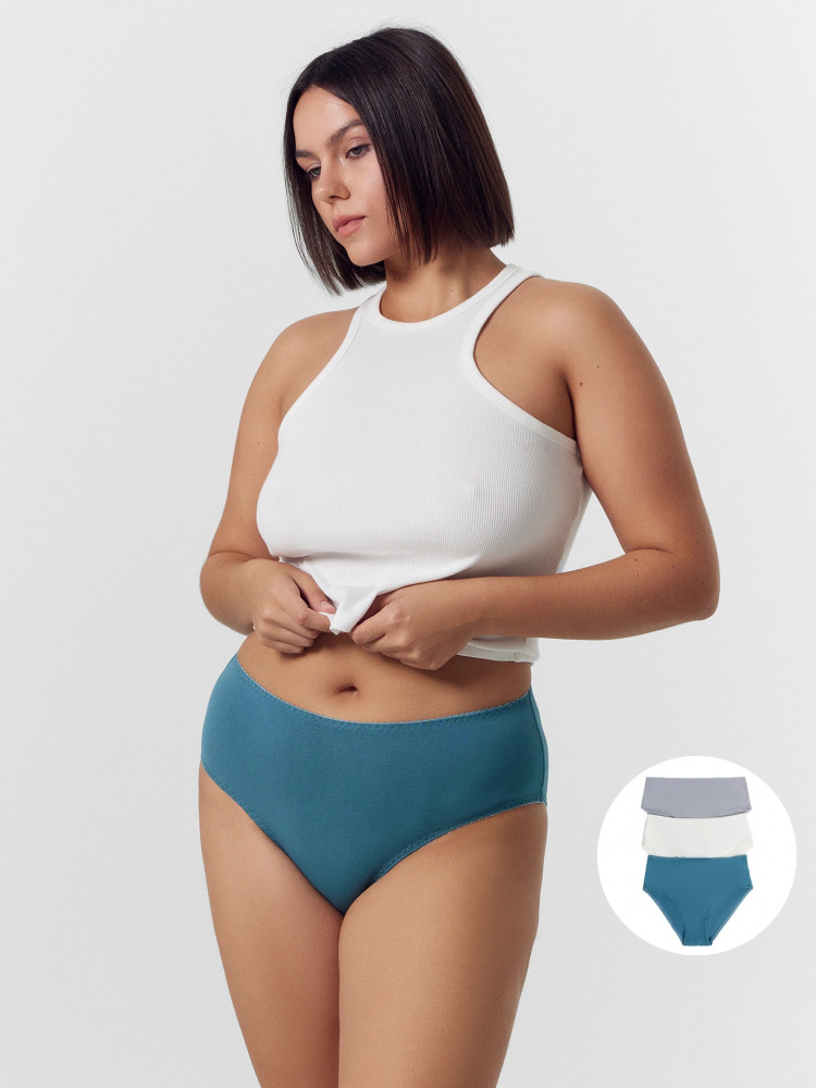 Качество трикотажа супер, приятно к телу, в комплекте 3 шт. Единственное для большого размера, посадка низковата.