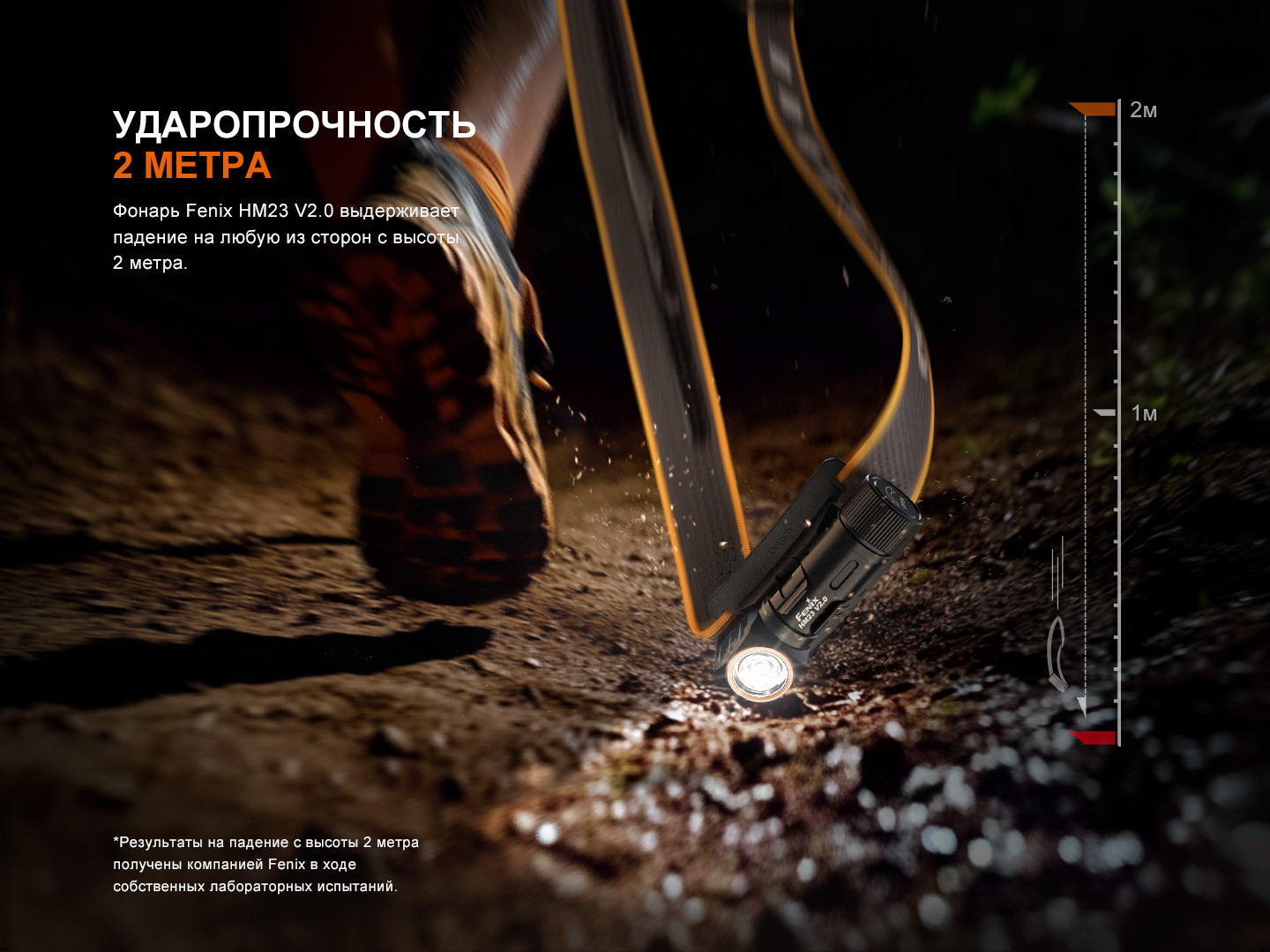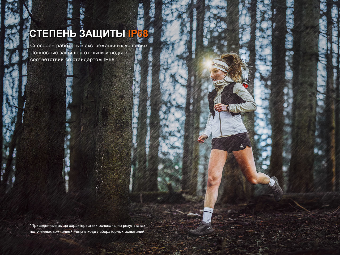 Помимо легкого и компактного дизайна, налобный фонарь обладает степенью защиты IP68 и полностью защищен от сильных водяных струй и пыли. В сочетании с ударопрочностью до 2 метров фонарь отлично подходит для интенсивного использования при различных видах активного отдыха или тренировок. Высокопроизводительные компоненты позволяют устройству работать в экстремальных условиях при температуре от −35° до 45°С.